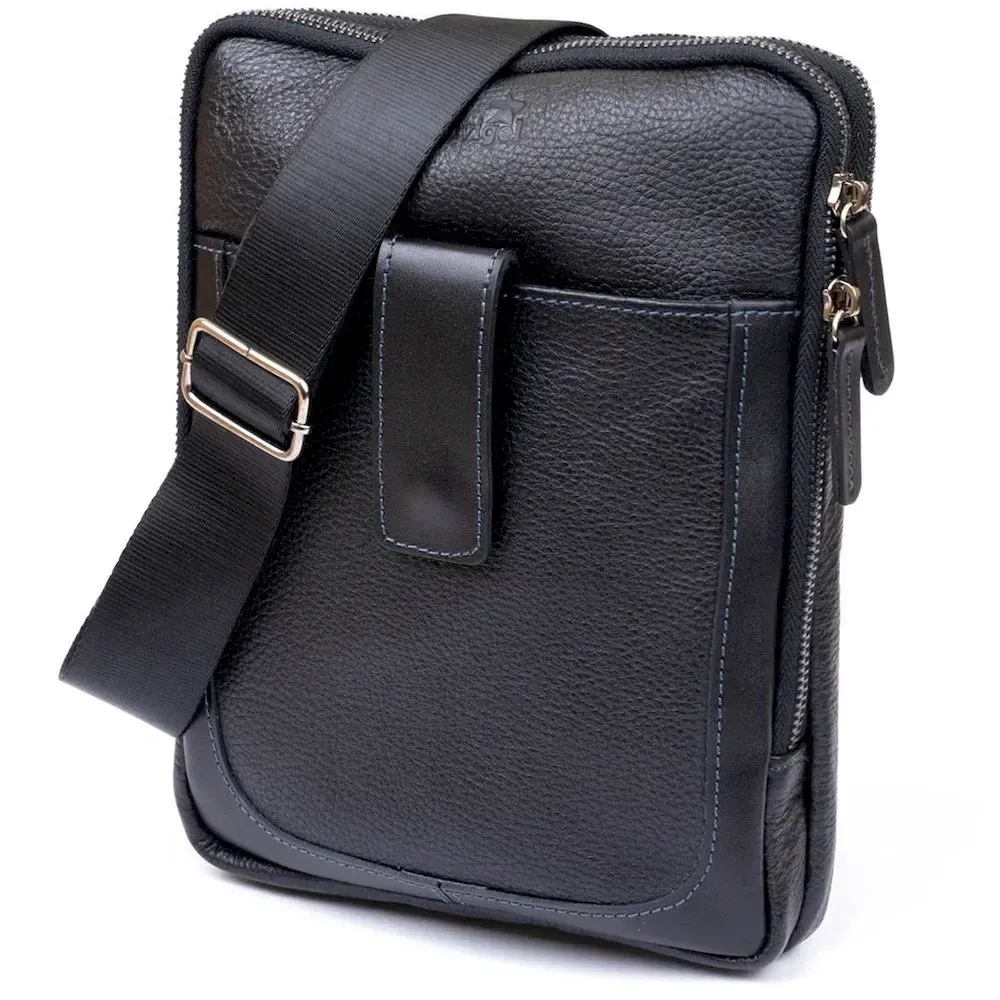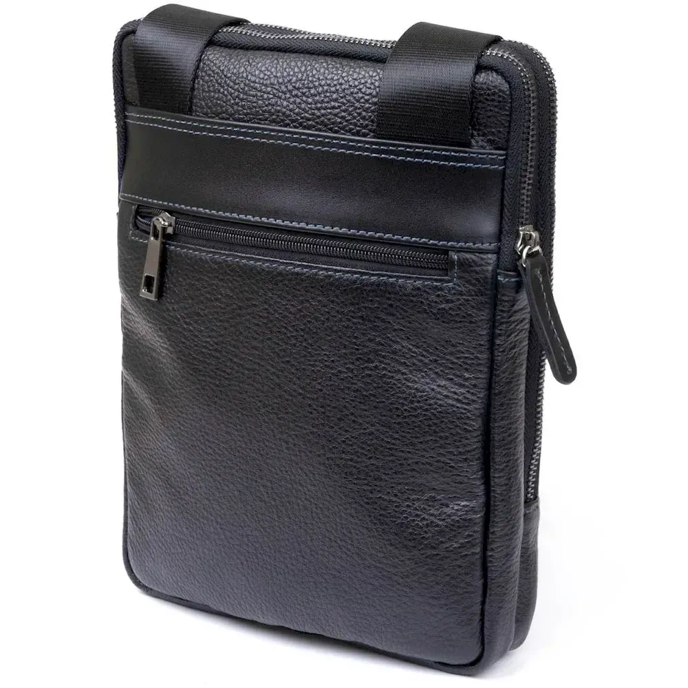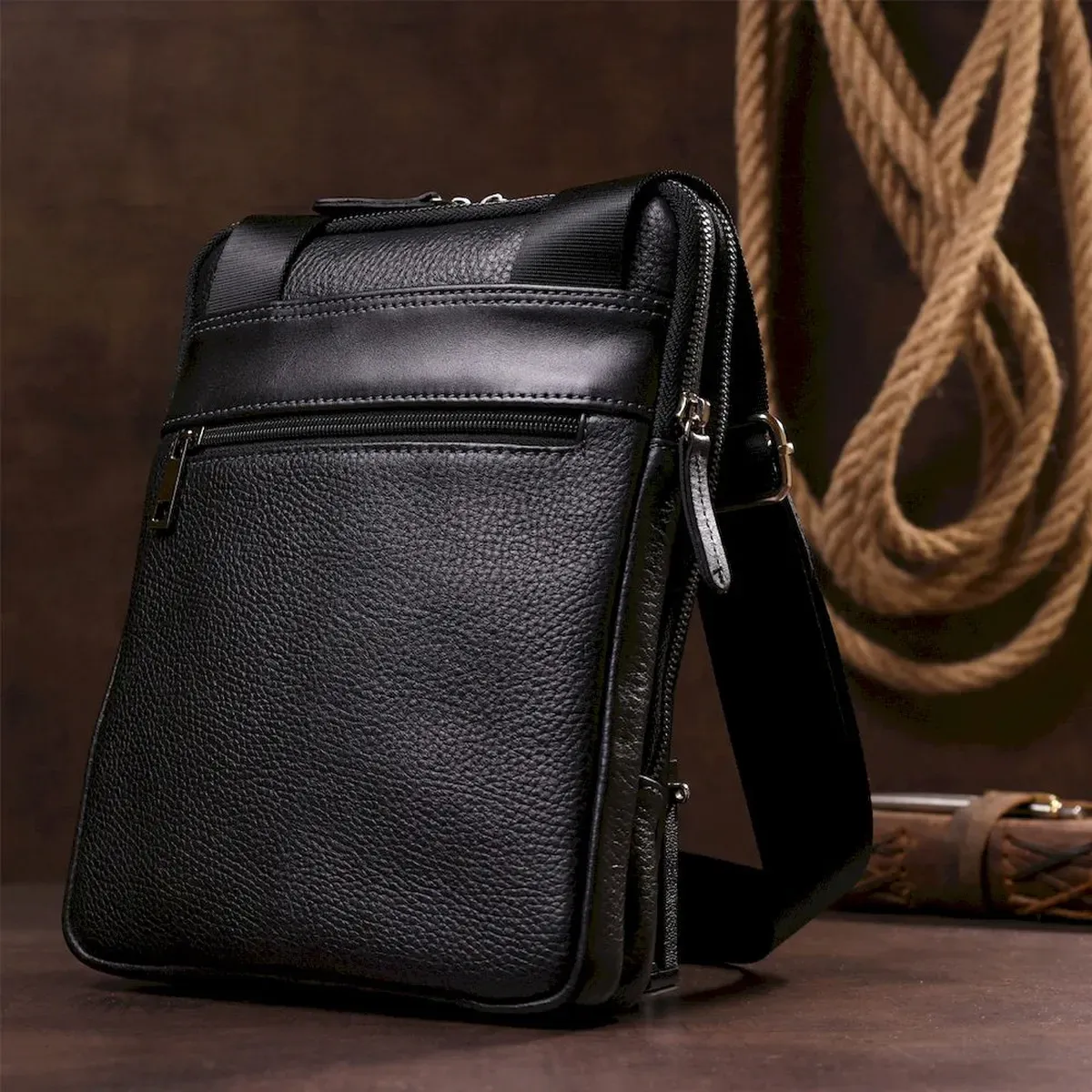 Практична сумка в зернистій шкірі "флотар" на два відділення. Модель у класичному чорному кольорі. Виробництво – Україна. Найвища якість виконання. Міцна фурнітура та якісні матеріали. Зерниста шкіра зовсім невибаглива у догляді. Довго служить та залишається в ідеальному вигляді. На виробах із зернистої шкіри менше видно подряпини та потертості. Чоловічий планшет - найкращий варіант сумки на кожен день і для зустрічей. У дизайні моделі немає жодних зайвих деталей, при цьому сумка виглядає дуже модно і стильно. На лицьовій стороні моделі тиснення у вигляді логотипу бренду. Сумка доповнена вставками з гладкої шкіри з боків та хлястик на лицьовій стороні, що підкреслить її індивідуальний та продуманий дизайн, а вам у свою чергу додасть впевненості та солідності. Аксесуар доповнений текстильним незнімним ремінцем на плече. Шкіряна сумка – найкращий подарунок для будь-якого чоловіка. Якщо ви хочете таку ж модель у кореневого кольору - код для пошуку 11286, у вінтажній шкірі - 11285.