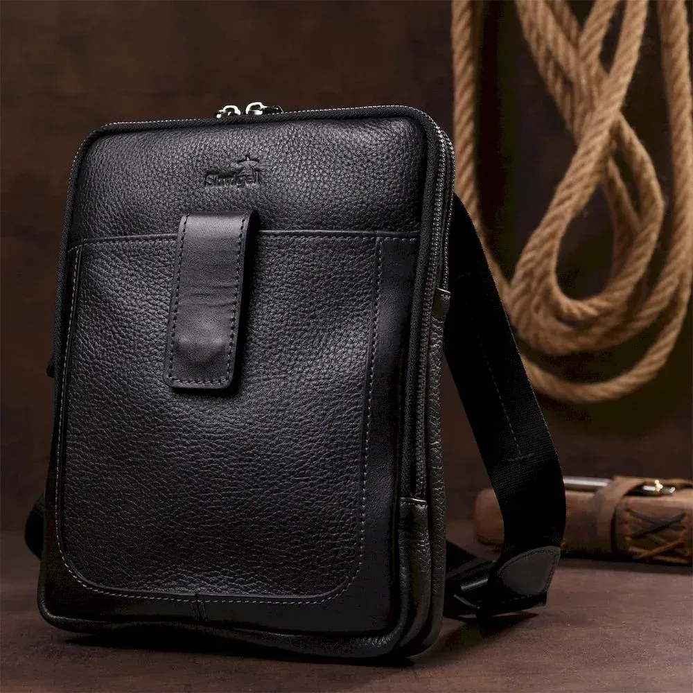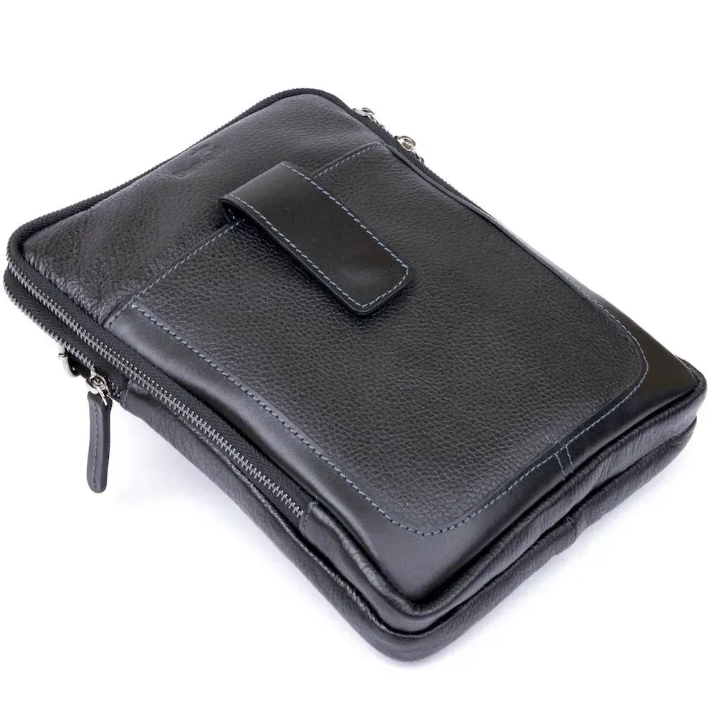 Сумка чоловіча планшет на два відділення шкіряна флотар SHVIGEL 11283 Чорна