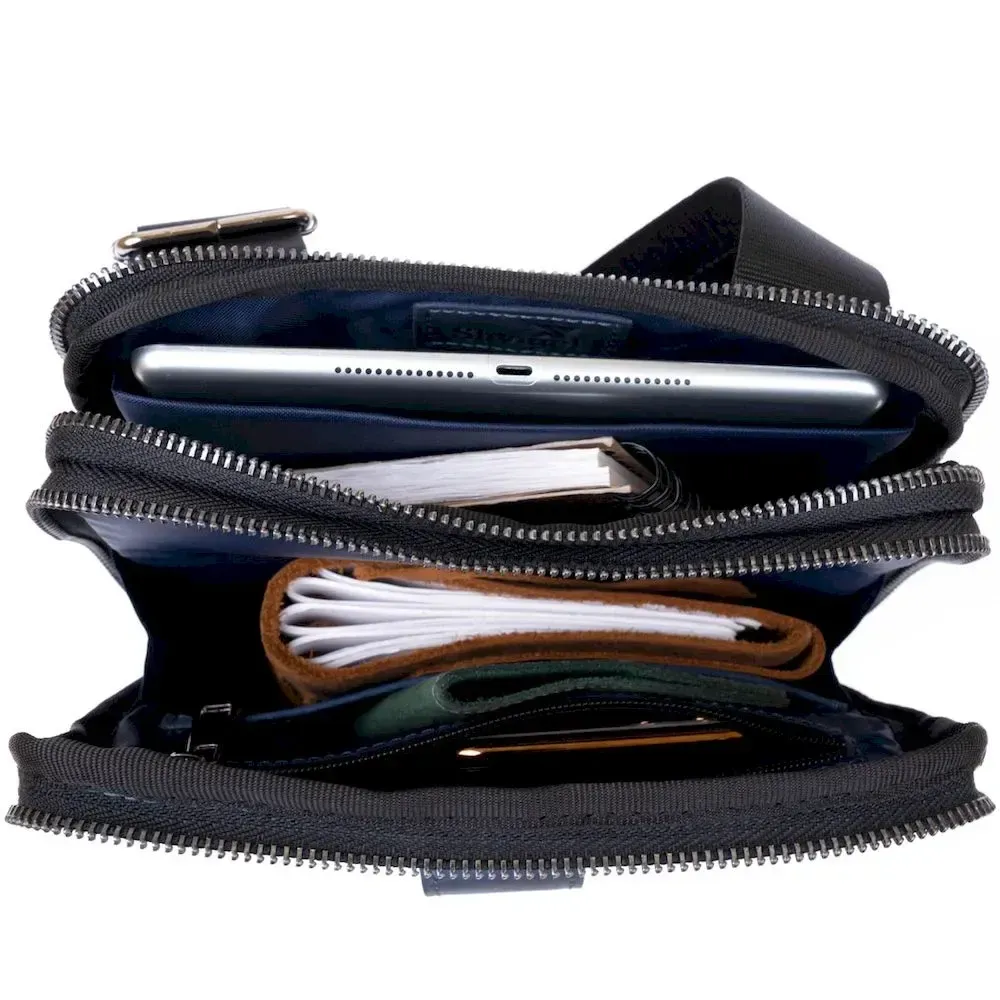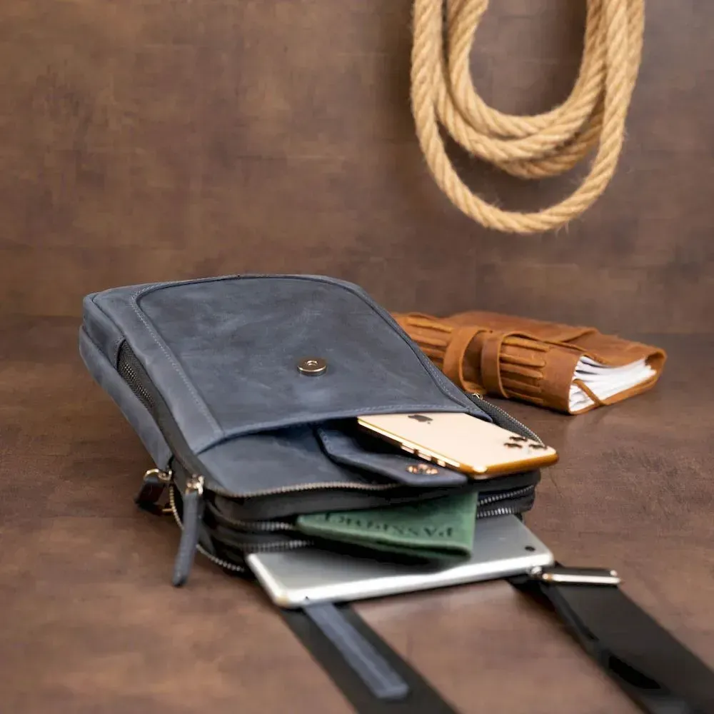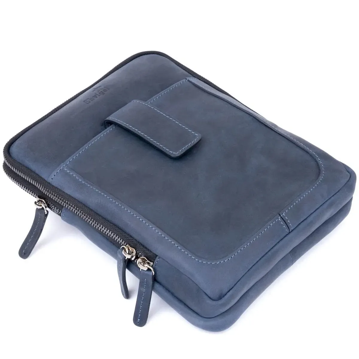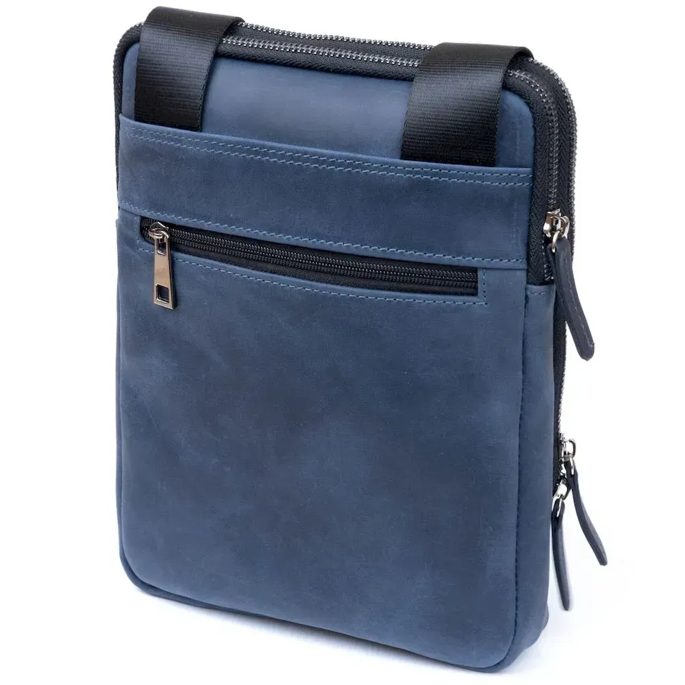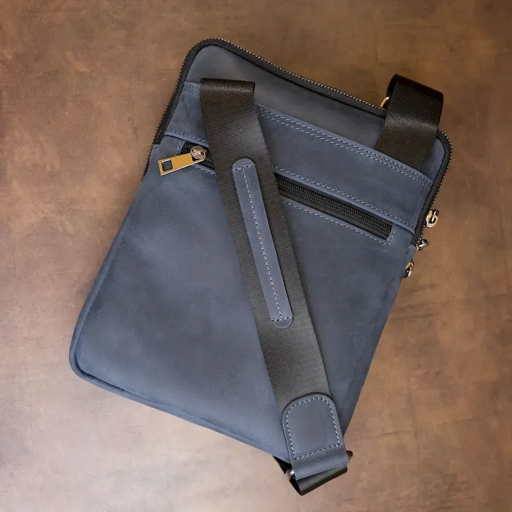 Практична сумка у матовій вінтажній шкірі на два відділення. Модель в оригінальному блакитному кольорі. Для чоловіків, які завжди прагнуть бути у тренді. Виробництво – Україна. Урожайна шкіра має дуже розкішний дизайн і користується особливою популярністю за свій "ефект старовини". Згодом на цій шкірі виникають подряпини і потертості, що виглядає дуже вінтажно. Чоловічий планшет - ідеальний варіант сумки на кожен день за дизайном, функціональністю та розмірами. У дизайні моделі немає жодних зайвих деталей, при цьому сумка виглядає дуже модно і стильно. Сумка виготовлена з урахуванням усіх модних тенденцій. На лицьовій стороні моделі тиснення у вигляді логотипу бренду. Аксесуар доповнений текстильною незнімною рейкою. Шкіряна сумка – найкращий подарунок для будь-якого чоловіка. Замовляйте цю модель як для себе, так і. на подарунок.