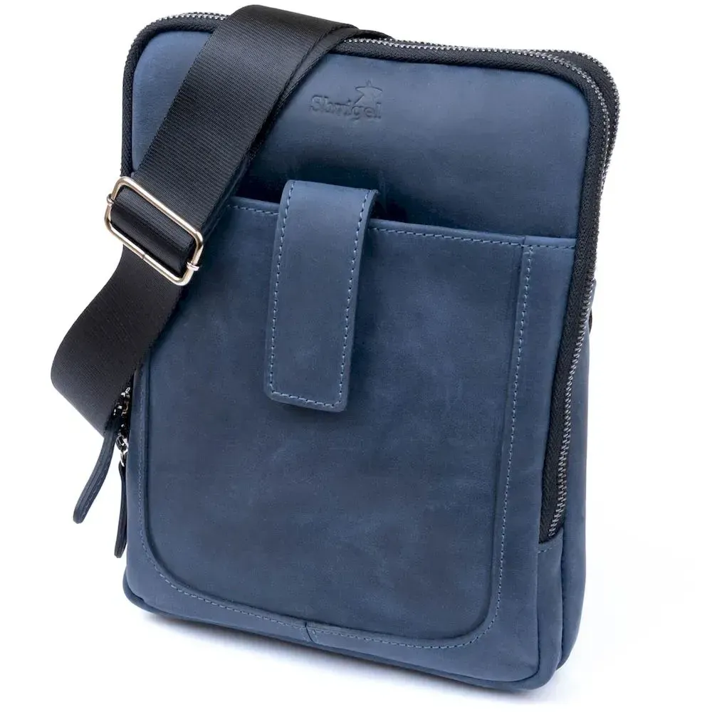 Сумка чоловіча планшет на два відділення вінтажна шкіряна SHVIGEL 11284 Синя