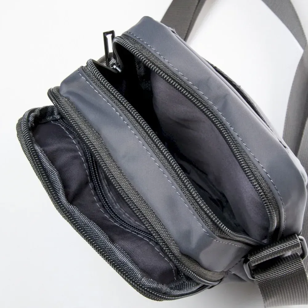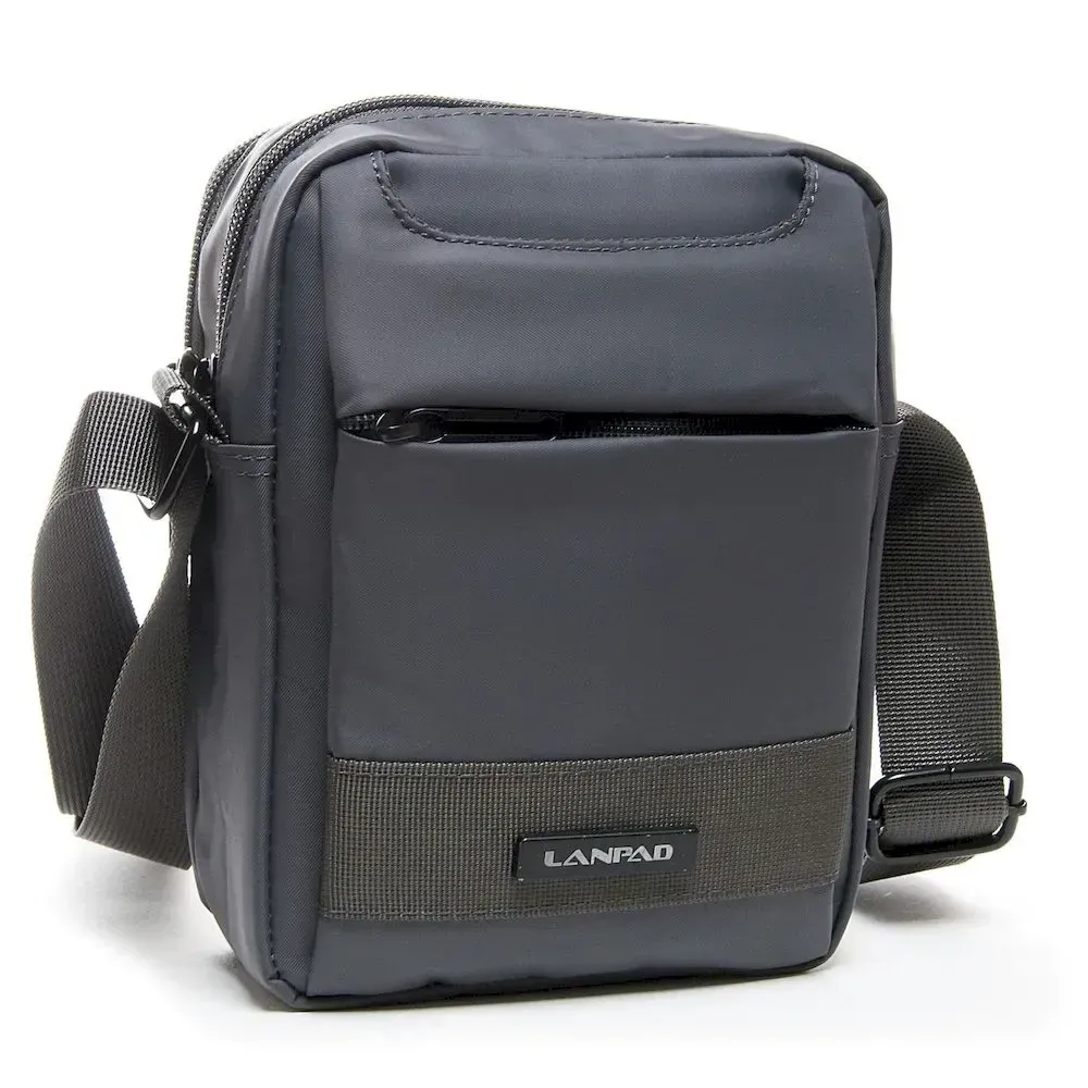 Чоловіча сумка Lanpad. Два відділення, що закриваються на блискавку. Усередині відділення розташована кишеня на блискавці. На фасаді знаходиться велика відкрита кишеня та кишеня на блискавці. На звороті є кишеня на блискавці. Регульований плечовий ремінь.