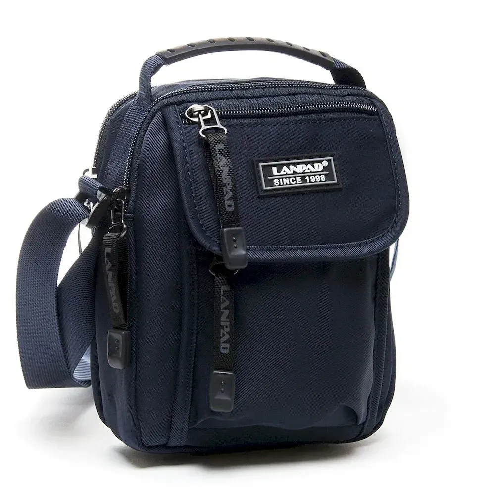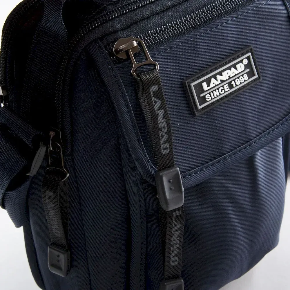 Чоловіча сумка Lanpad. Два відділення, що закриваються на блискавку. Усередині відділення розташована кишеня на блискавці. На фасаді під клапаном знаходиться відкрита кишеня та кишеня на блискавці. На звороті є кишеня на блискавці. Регульований плечовий ремінь.