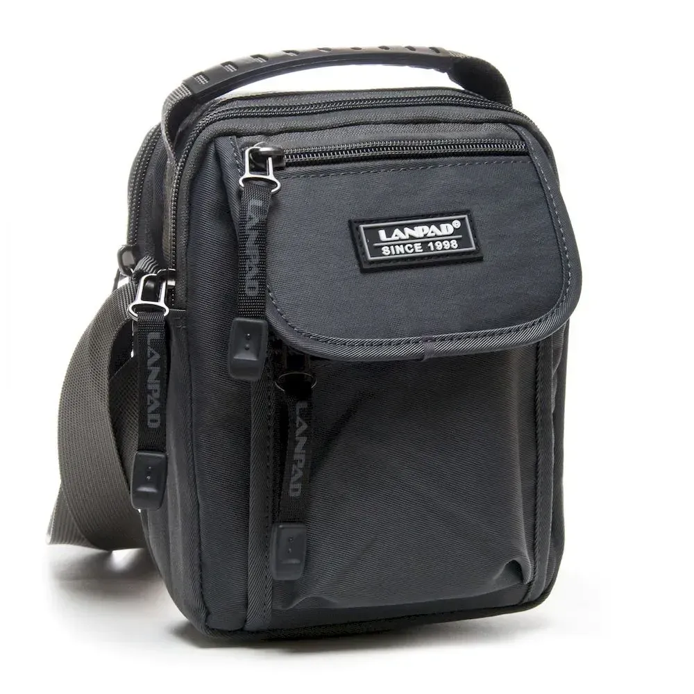 Чоловіча сумка Lanpad. Два відділення, що закриваються на блискавку. Усередині відділення розташована кишеня на блискавці. На фасаді під клапаном знаходиться відкрита кишеня та кишеня на блискавці. На звороті є кишеня на блискавці. Регульований плечовий ремінь.