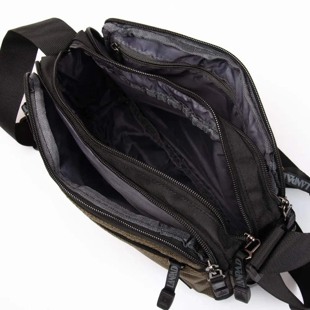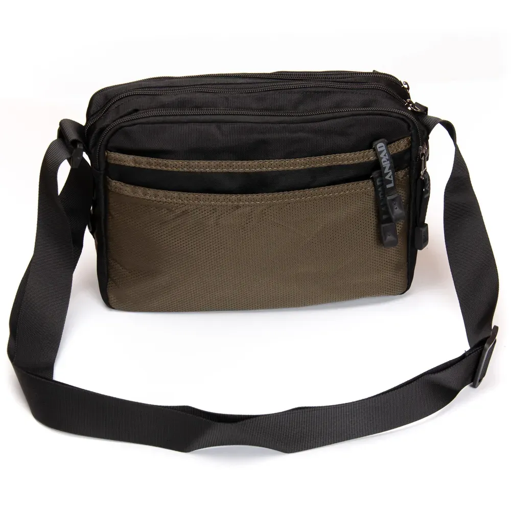 Мужская большая горизонтальная сумка кросс-боди Lanpad. Три отделения, закрываются на молнию. Внутри отделения есть карман на молнии. На фасаде и на обратной стороне расположены по два вместительных кармана на молнии.