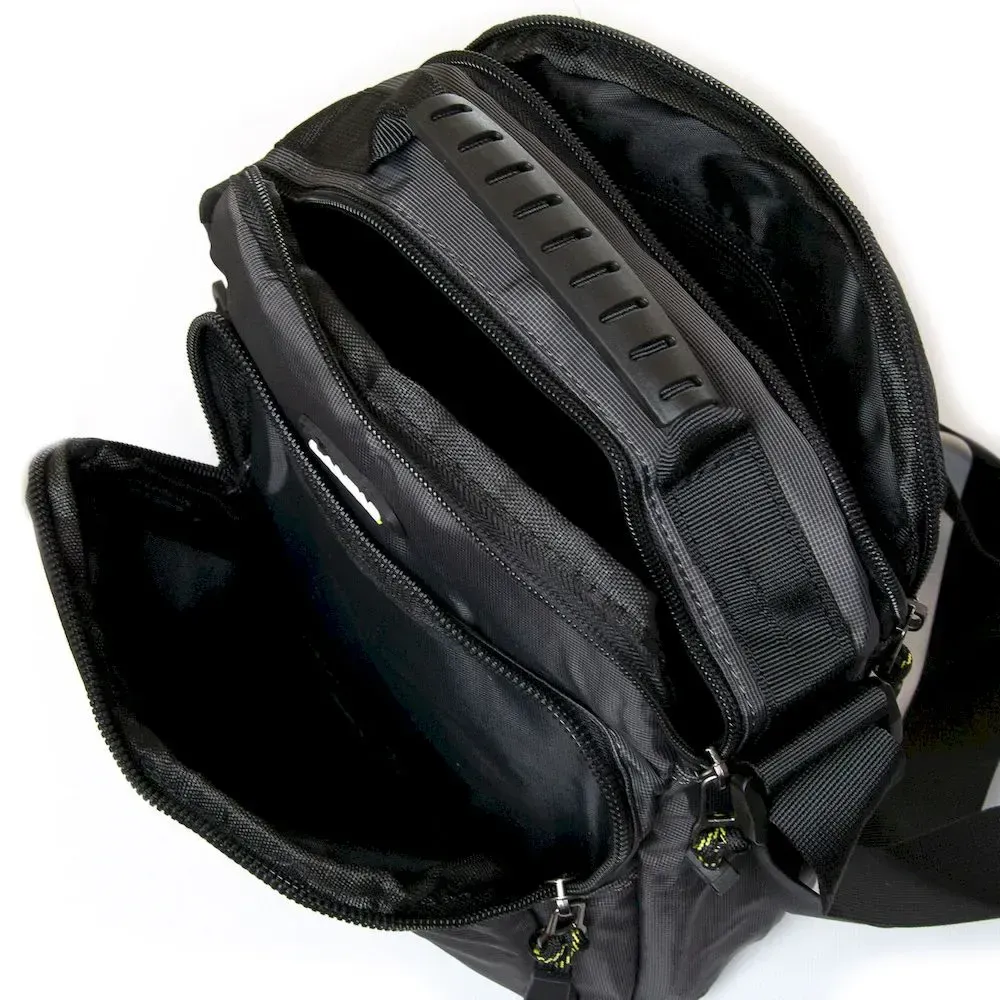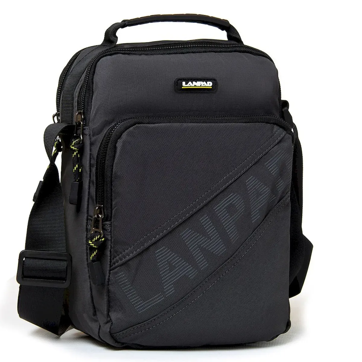 Чоловіча сумка-планшет Lanpad. Два відділення, що закриваються на блискавку. Усередині відділень розташована кишеня на блискавці. На фасаді та на звороті є великі кишені на блискавці. Регульований плечовий ремінь шириною 4см.