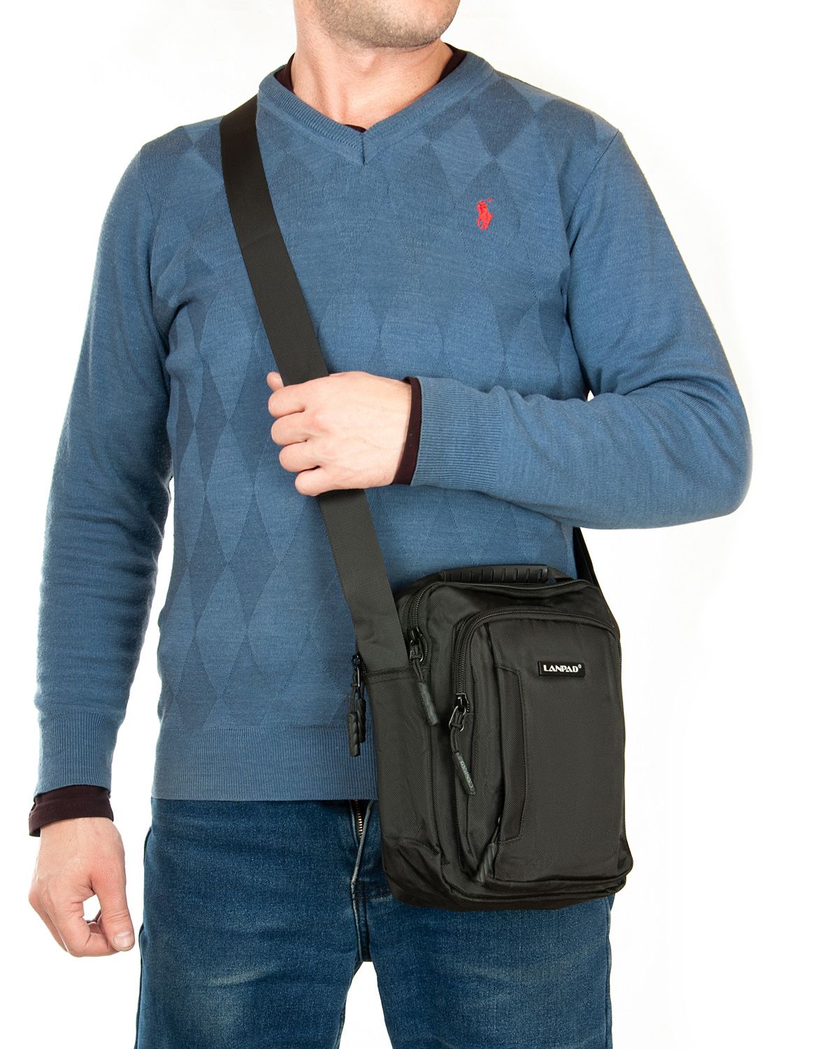 Большая мужская сумка-планшет Lanpad. Изготовлена из плотного нейлона.