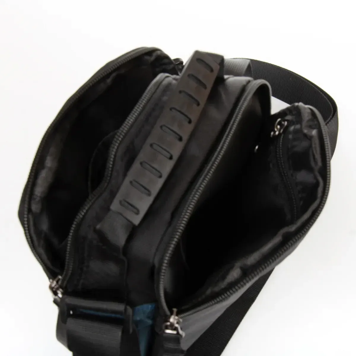 Чоловіча сумка Lanpad. Два відділення, що закриваються на блискавку. Усередині відділень є кишеня на блискавці та відкрита кишеня. На фасаді знаходиться кишеня на блискавці та кишеня під клапаном, а на звороті розташована одна кишеня на блискавці. Регульований плечовий ремінь шириною 3см. Розмір (см) 18*20*10
