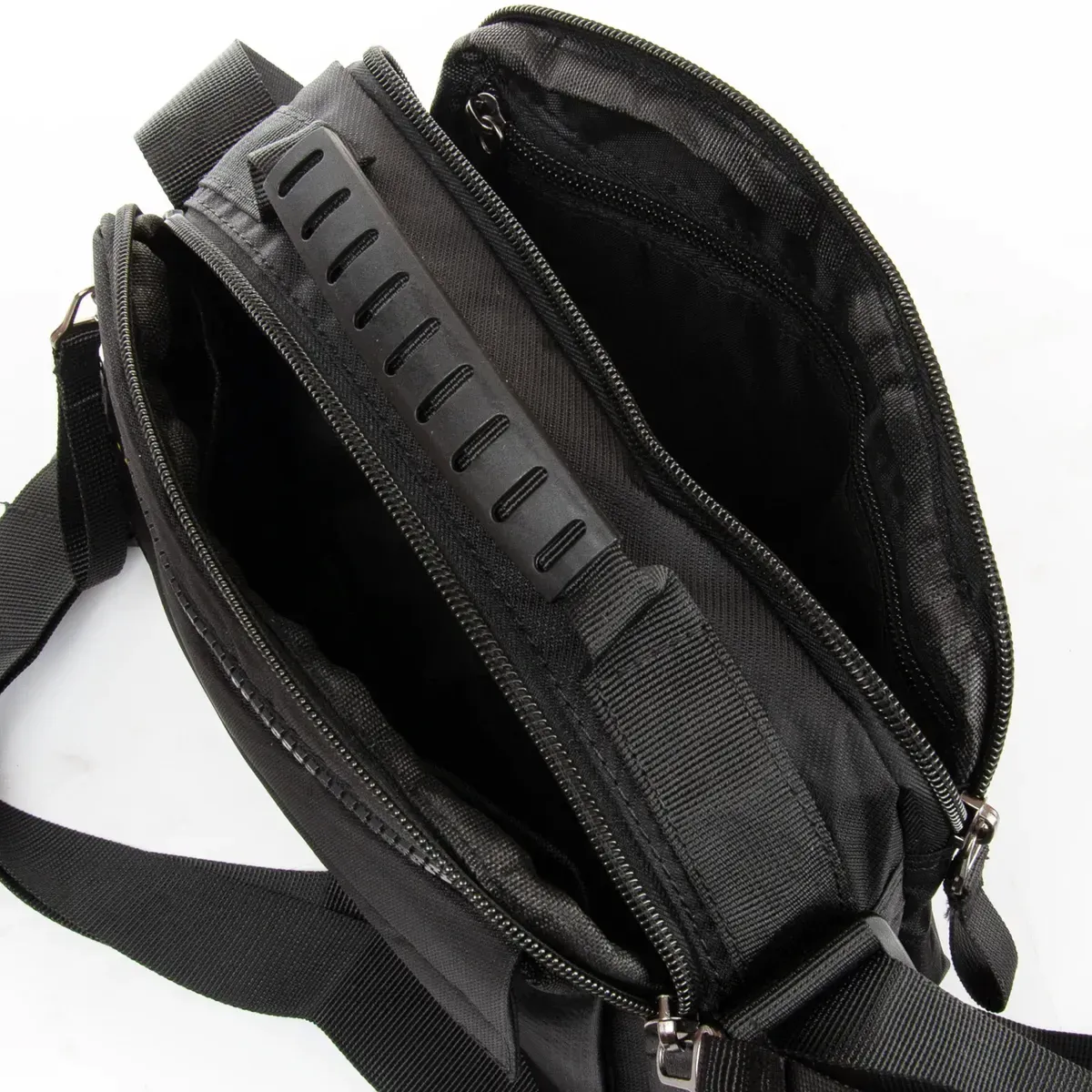Чоловіча сумка Lanpad. Два відділення, що закриваються на блискавку. Усередині відділень є кишеня на блискавці та відкрита кишеня. На фасаді знаходиться кишеня на блискавці та кишеня під клапаном, а на звороті розташована одна кишеня на блискавці. Регульований плечовий ремінь шириною 3см.