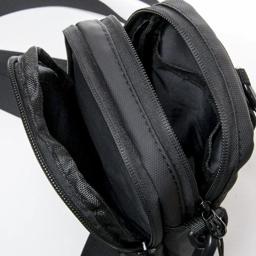 Чоловіча сумка Lanpad. Два відділення, що закриваються на блискавку. Усередині відділення є відкита кишеня. На фасаді розташована кишеня на блискавці. На звороті є кріплення для носіння сумки на поясі. Регульований плечовий ремінь у комплекті.