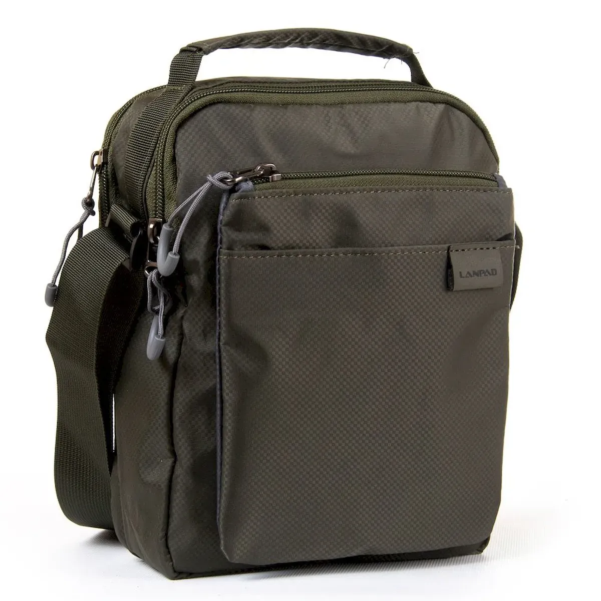 Чоловіча сумка Lanpad. Два відділення, що закриваються на блискавку. Усередині відділень розташована кишеня на блискавці та відкрита кишеня. На фасаді розташовані дві кишені на блискавці. На звороті є кишеня на блискавці. Регульований плечовий ремінь.