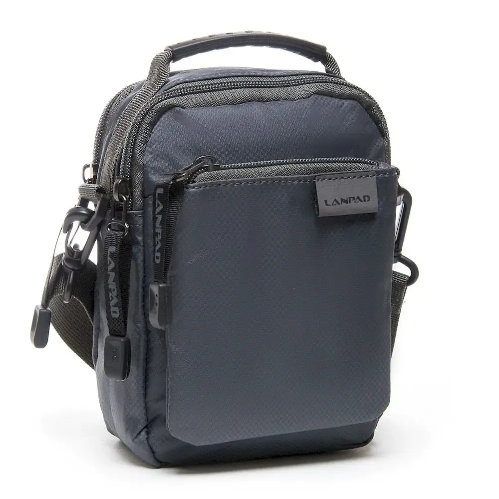 Чоловіча сумка Lanpad. Два відділення, що закриваються на блискавку. Усередині відділень розташована кишеня на блискавці та відкрита кишеня. На фасаді розташована кишеня на блискавці. На звороті є кріплення для поясного ременя. Регульований плечовий ремінь у комплекті.