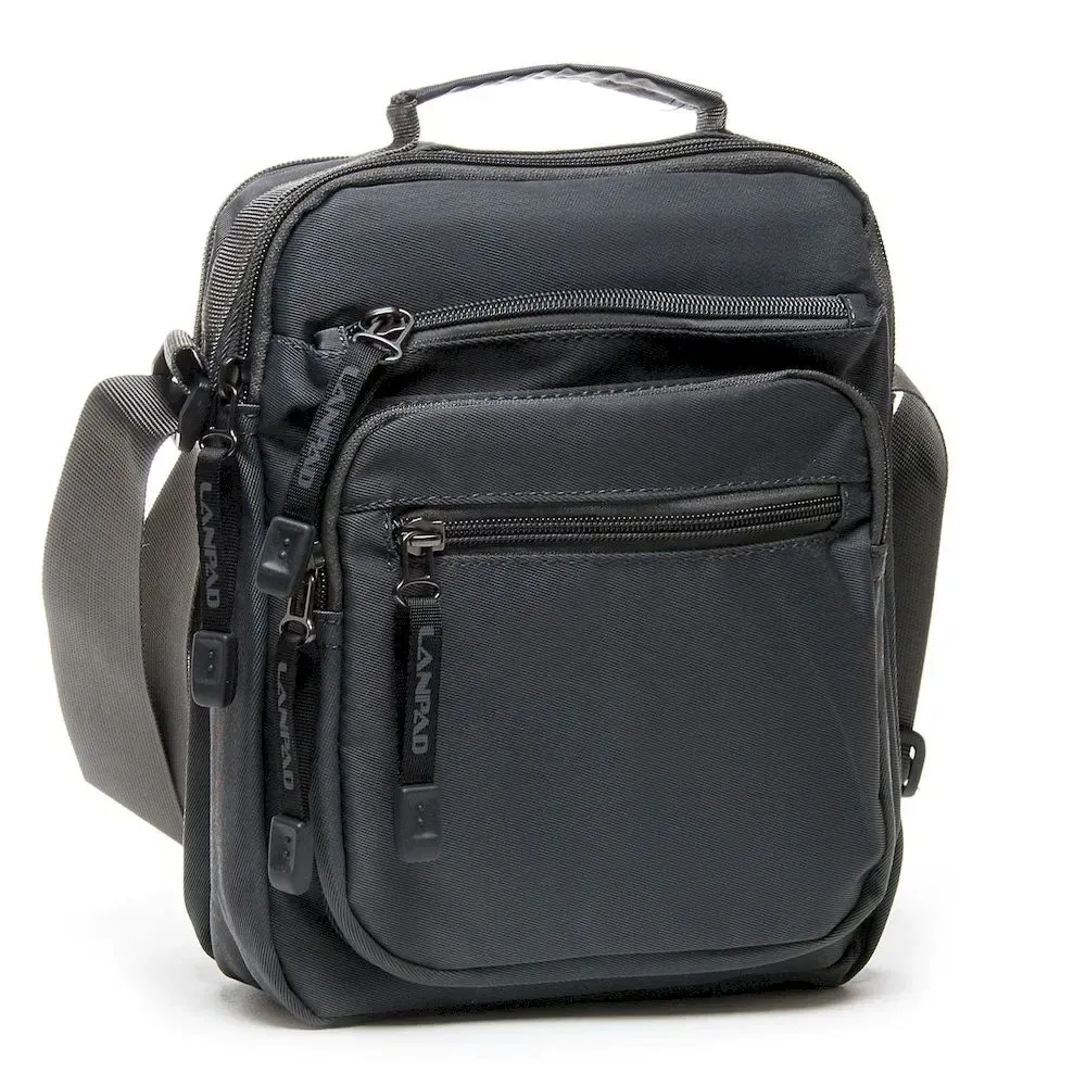 Чоловіча сумка Lanpad. Два відділення, що закриваються на блискавку. Усередині відділення є кишеня на блискавці. На фасаді знаходяться три великі кишені на блискавці. На звороті є одна кишеня на блискавці. Регульований плечовий ремінь.