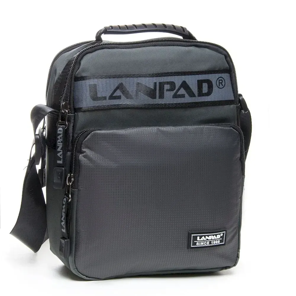 Чоловіча сумка Lanpad. Два відділення, що закриваються на блискавку. Усередині відділення є кишеня на блискавці та відкрита кишеня. На фасаді знаходиться велика кишеня на блискавці. На звороті є кишеня на блискавці. Регульований плечовий ремінь.