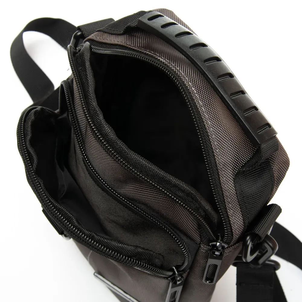Мужская сумка Lanpad. Одно отделение, закрывается на молнию. Внутри отделения расположен карман на молнии и открытый карман. На фасаде находятся большой карман на молнии. На обратной стороне есть крепление на пояс.