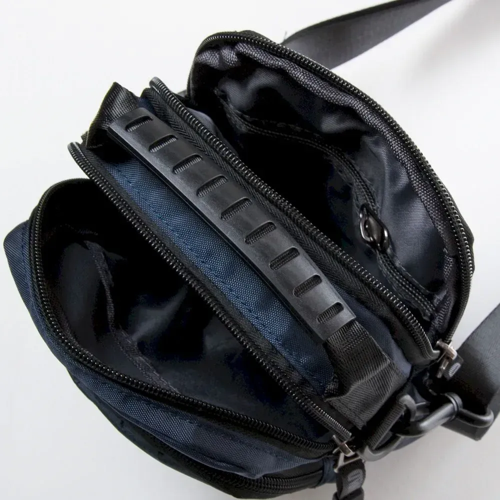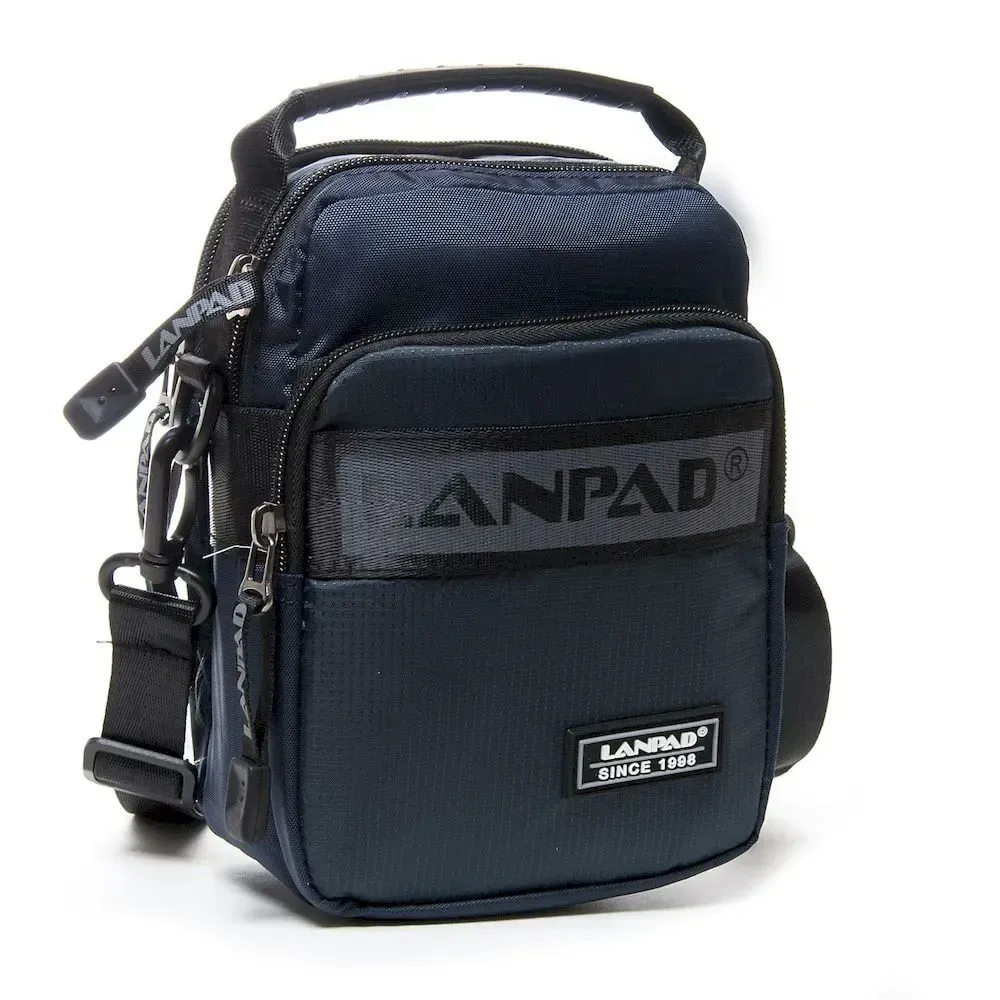 Чоловіча сумка Lanpad. Два відділення, що закриваються на блискавку. Усередині відділення є кишеня на блискавці та відкрита кишеня. На фасаді знаходиться кишеня на блискавці. На звороті є кріплення для носіння сумки на поясі. Регульований плечовий ремінь у комплекті.