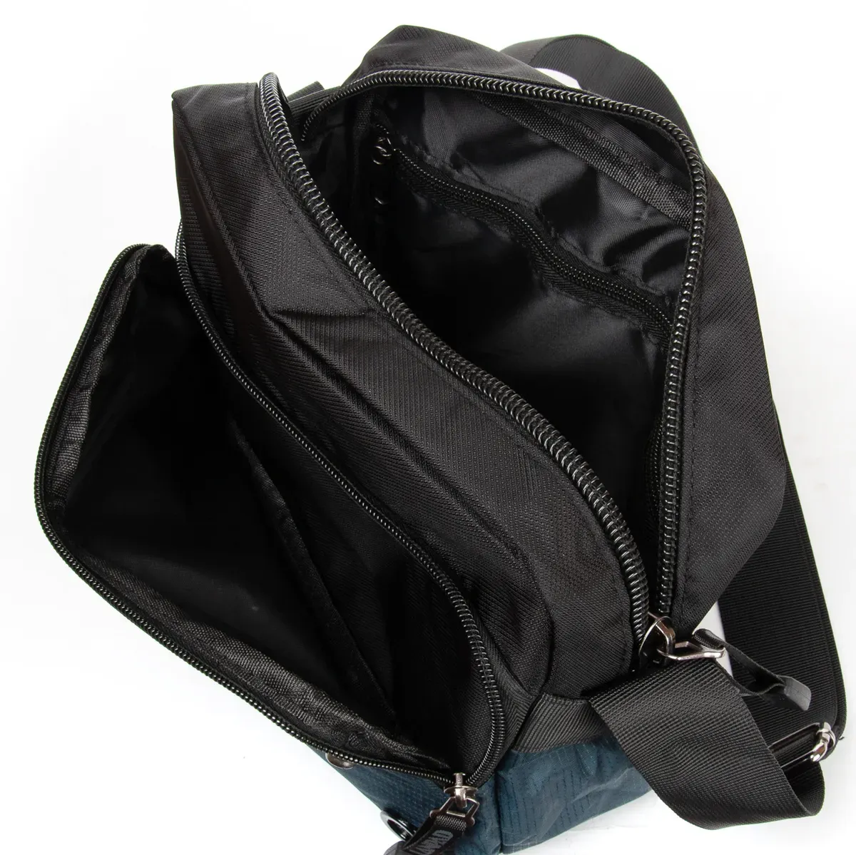 Чоловіча сумка Lanpad. Одне основне відділення закривається на блискавку. Усередині відділення є кишеня на блискавці та відкрита кишеня. На фасаді та на звороті розташовані кишені на блискавці. Регульований плечовий ремінь шириною 4см.