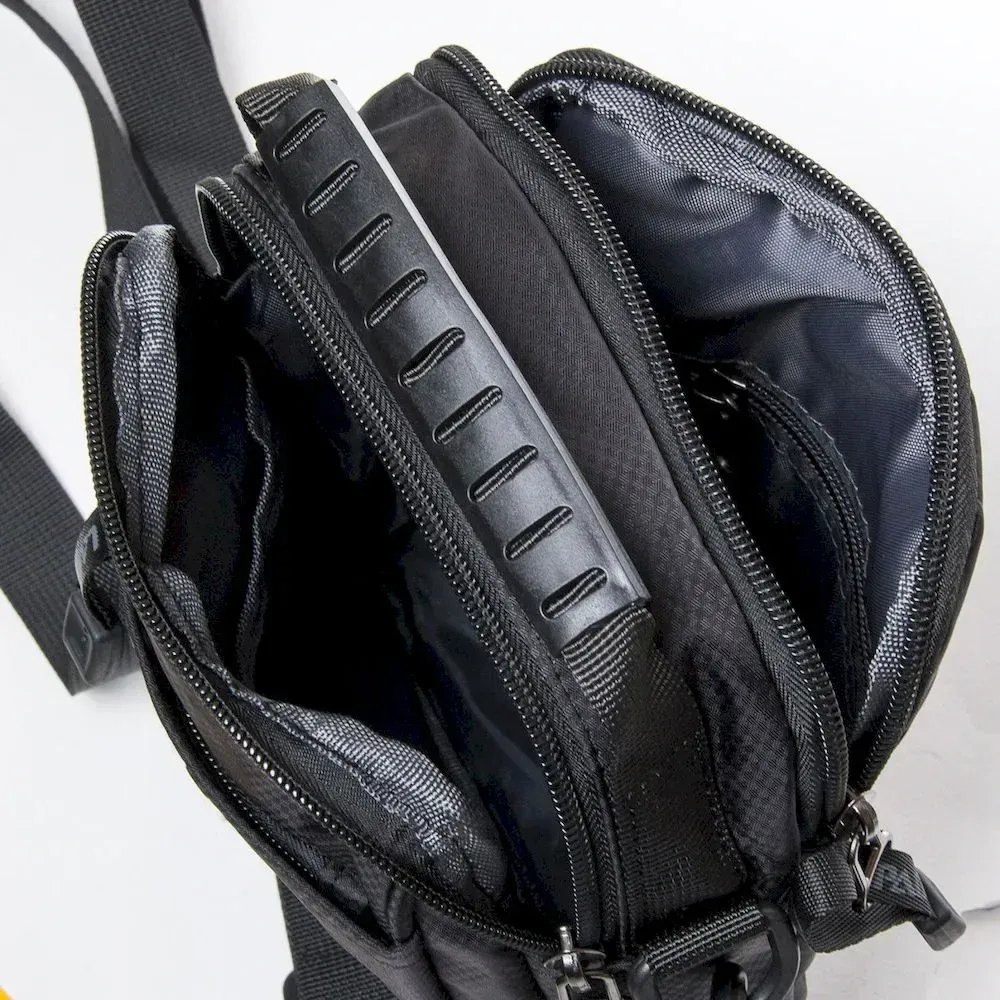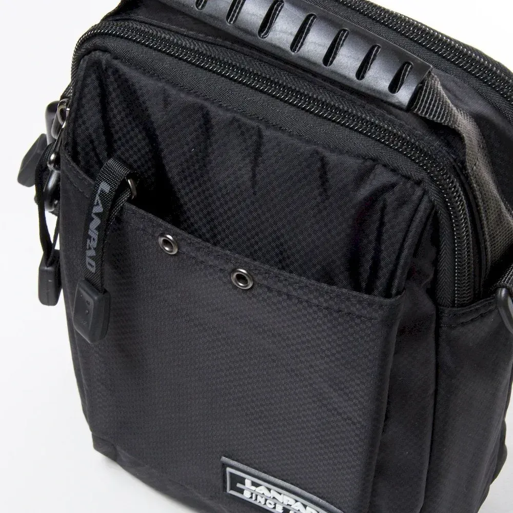 Чоловіча сумка Lanpad. Два відділення, що закриваються на блискавку. Усередині відділень є кишеня на блискавці та відкрита кишеня. На фасаді знаходиться кишеня на блискавці. На звороті є кріплення на пояс. У комплекті регульований плечовий ремінь.