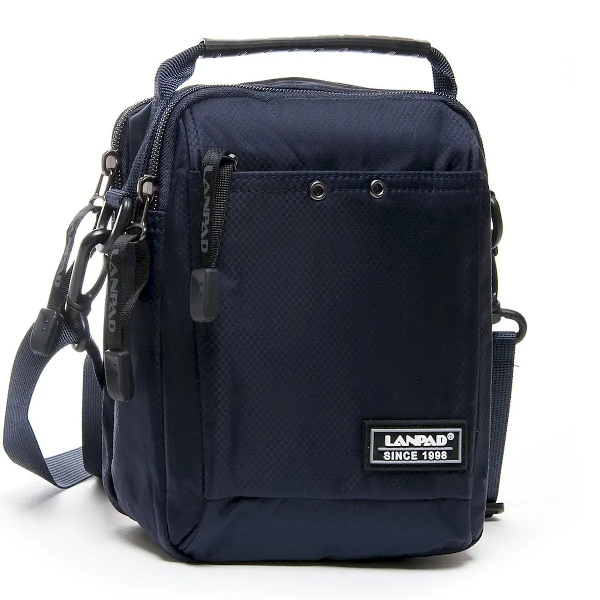 Чоловіча сумка Lanpad. Два відділення, що закриваються на блискавку. Усередині відділень є кишеня на блискавці та відкрита кишеня. На фасаді знаходиться кишеня на блискавці. На звороті є кріплення на пояс. У комплекті регульований плечовий ремінь.