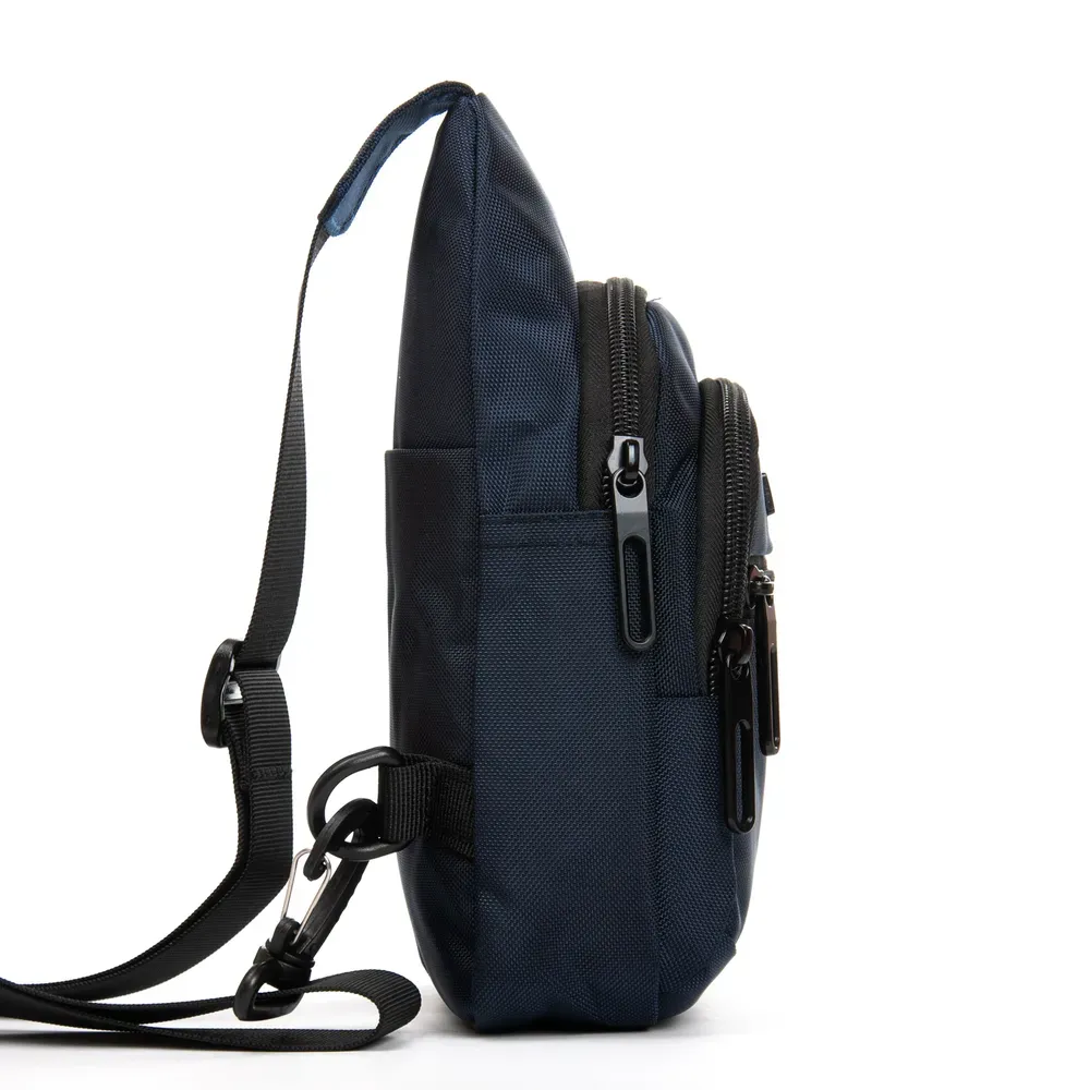 Чоловіча сумка Lanpad. Одне відділення закривається на блискавку. Усередині відділення є кишеня на блискавці та відкрита бічна кишеня. На фасаді знаходиться кишеня на блискавці. На звороті є кріплення на пояс. Регульований плечовий ремінь шириною 3см.
