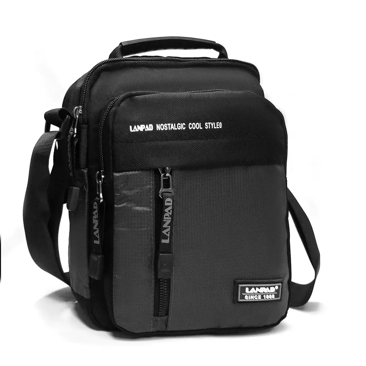 Чоловіча сумка-планшет Lanpad. Два відділення, що закриваються на блискавку. Усередині є кишеня на блискавці та відкрита кишеня. На фасаді сумки знаходяться 2 кишені на блискавці і на звороті є одна кишеня на блискавці. Регульований плечовий ремінь завширшки 4см.