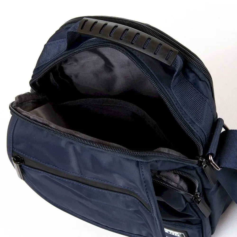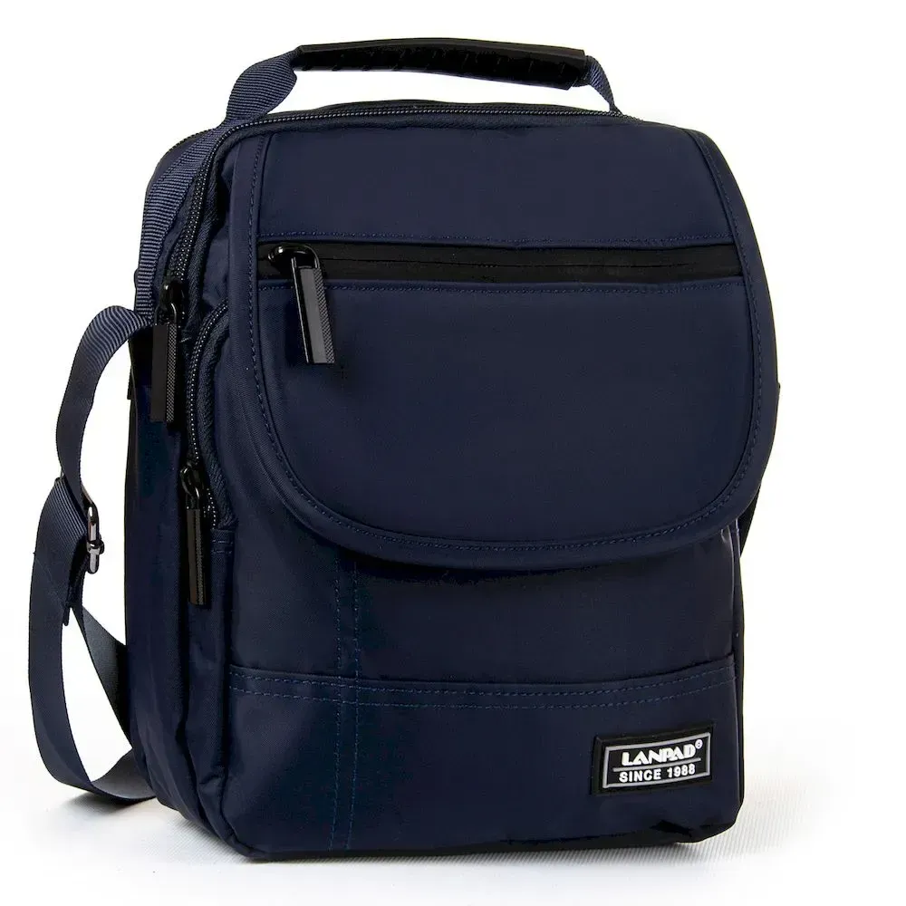Чоловіча сумка Lanpad. Два відділення, що закриваються на блискавку. Усередині відділення розташована кишеня на блискавці та відкрита кишеня. На фасаді на клапані та під клапаном знаходиться велика кишеня на блискавці. На звороті є кишеня на блискавці. Регульований плечовий ремінь.