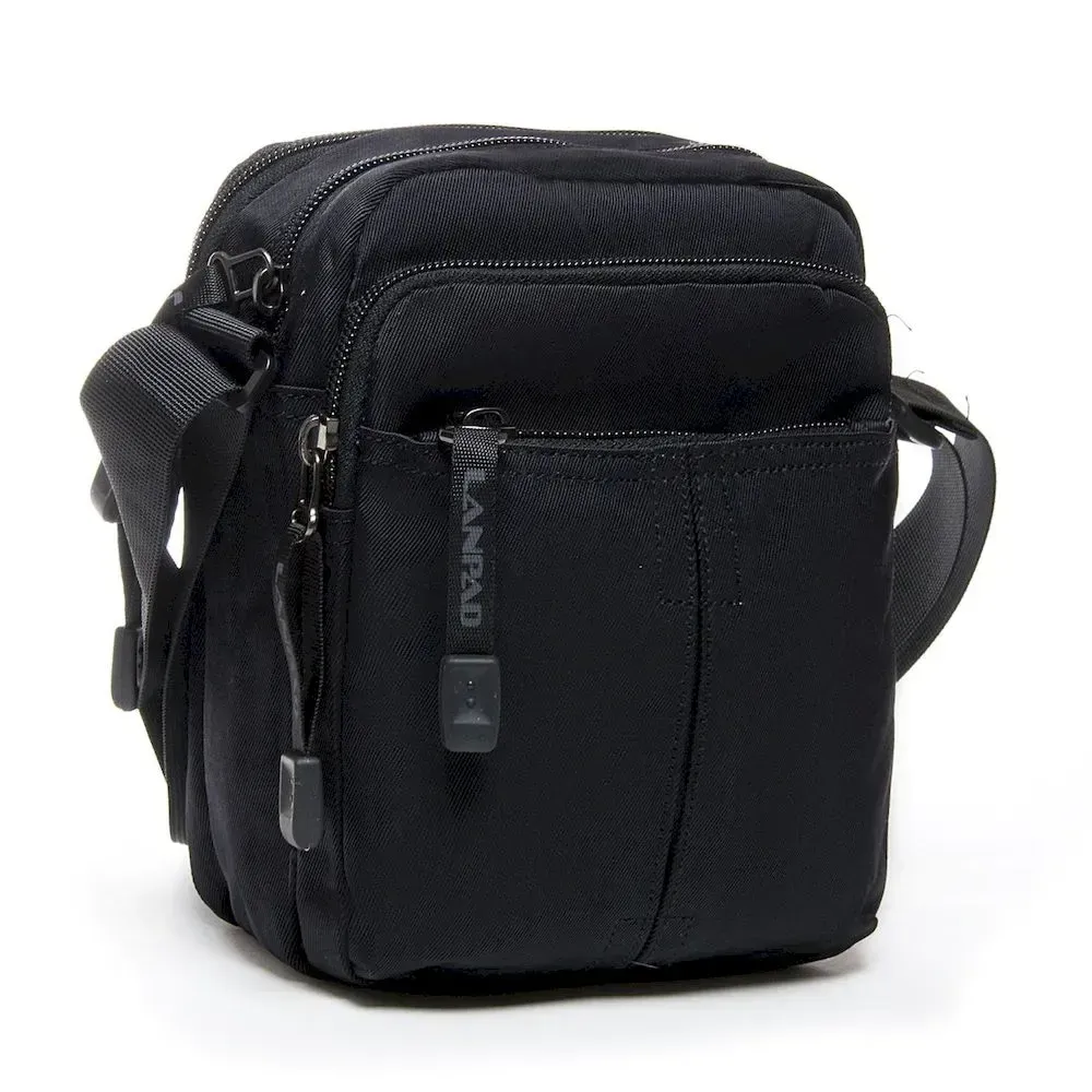 Чоловіча сумка Lanpad. Два відділення, що закриваються на блискавку. Усередині відділень розташована кишеня на блискавці. На фасаді розташовані дві кишені на блискавці. Регульований плечовий ремінь.
