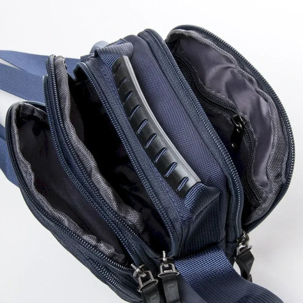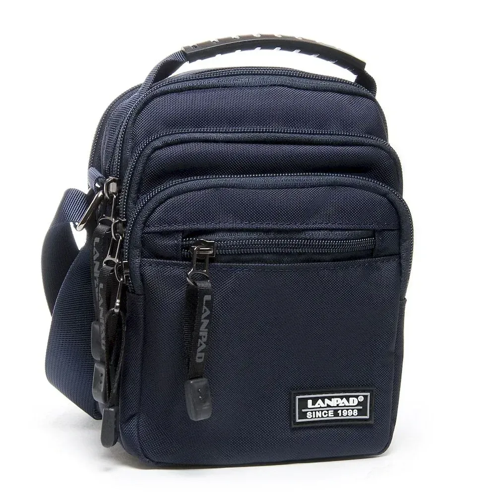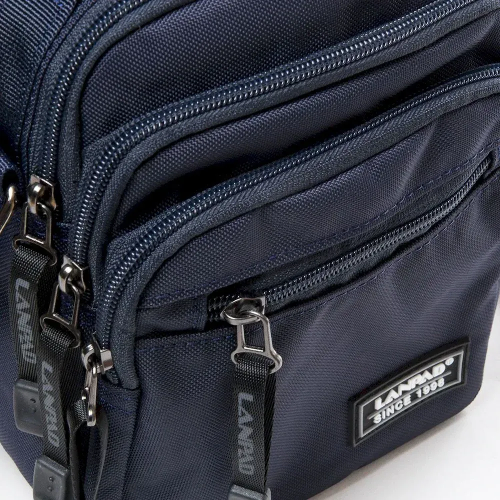 Чоловіча сумка Lanpad. Два відділення, що закриваються на блискавку. Усередині відділень розташована кишеня на блискавці. На фасаді розташовані три кишені на блискавці. Регульований плечовий ремінь.
