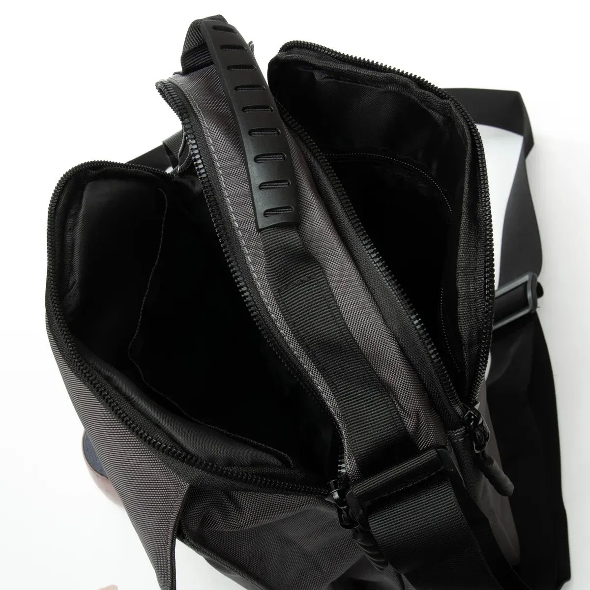 Два больших отделения, закрываются на молнии. Внутри одного отделения есть боковой карман на молнии, а во втором есть открытый карман. На фасаде расположен вместительный карман под клапаном. На обратной стороне сумки находится один карман на молнии.