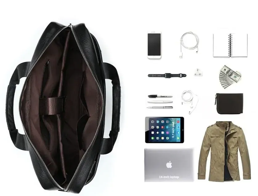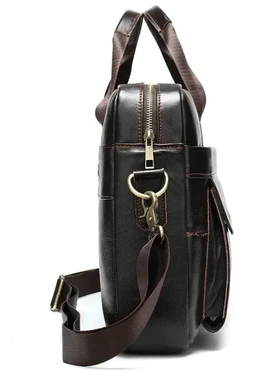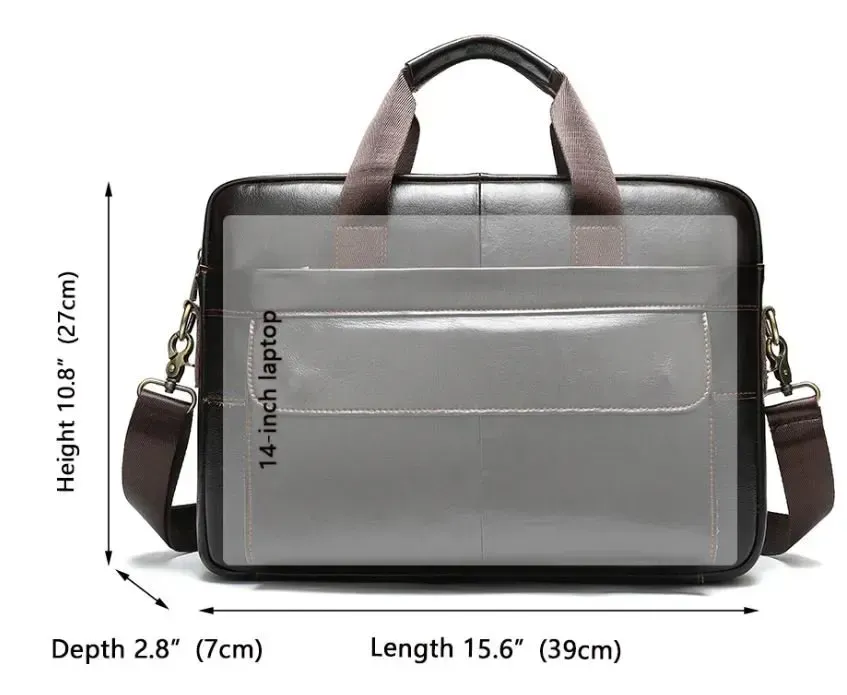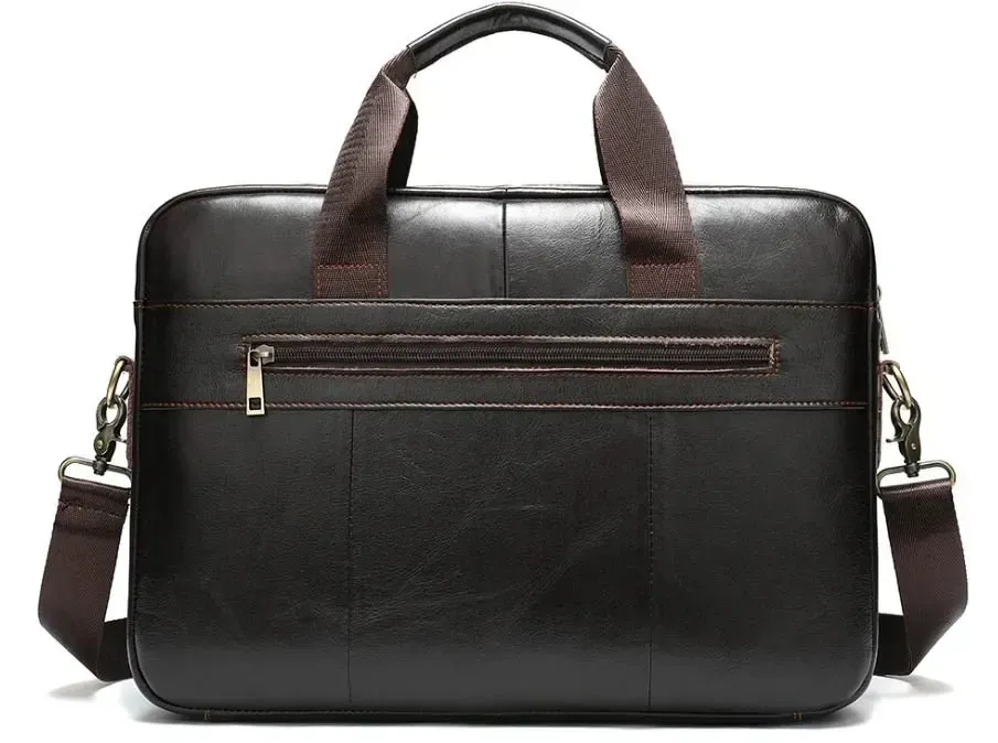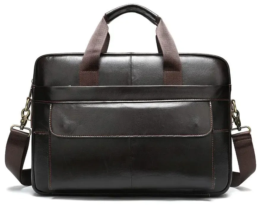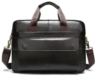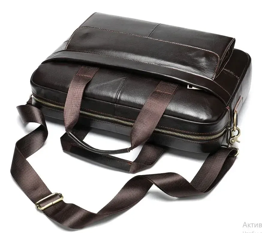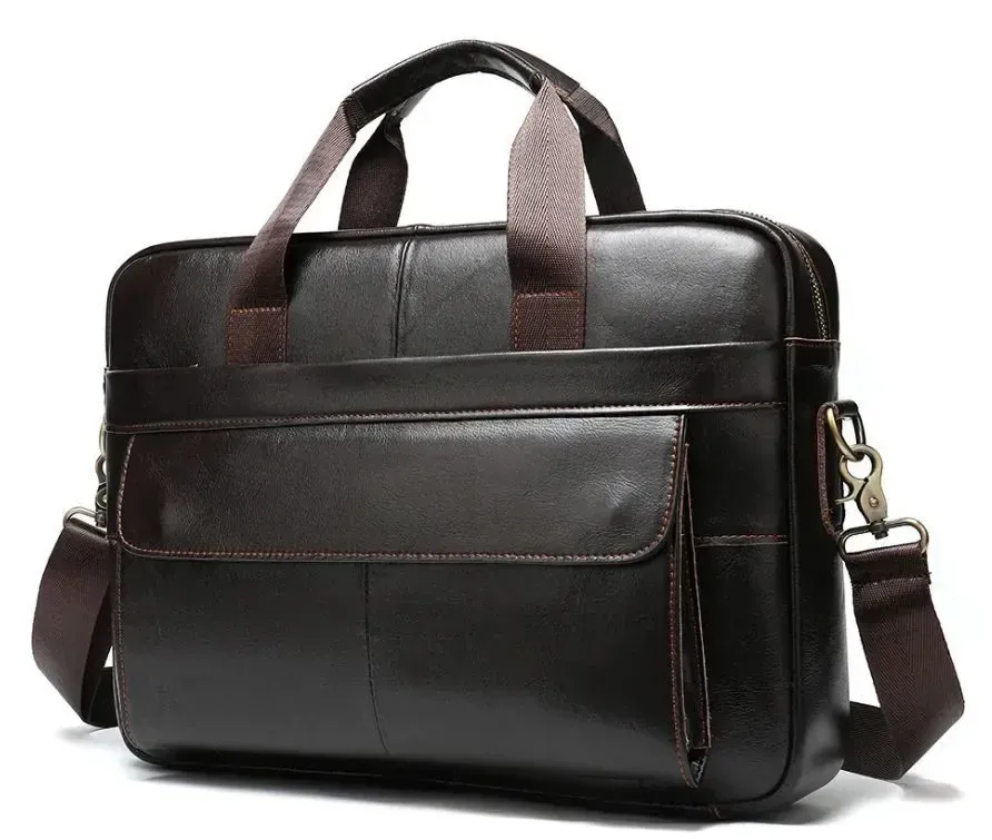 Солідна сумка для ділових чоловіків. Підкреслить ваш статус у суспільстві та відмінне почуття стилю. Аксесуар чудово впишеться у ваш діловий стиль. У сумці спокійно можна носити ноутбук та документи. Зручно гасає як у руках, так і на плечі за допомогою текстильної ручки. Дизайн аксесуарів виготовлений у класичному стилі. Модель прошита рудою ниткою та доповнена золотистою фурнітурою. Буде чудовим подарунком для будь-якого чоловіка. Купуючи таку сумку, ви будете здивовані, як вона приємно гасає. Аксесуар упакований у тканинний чохол.