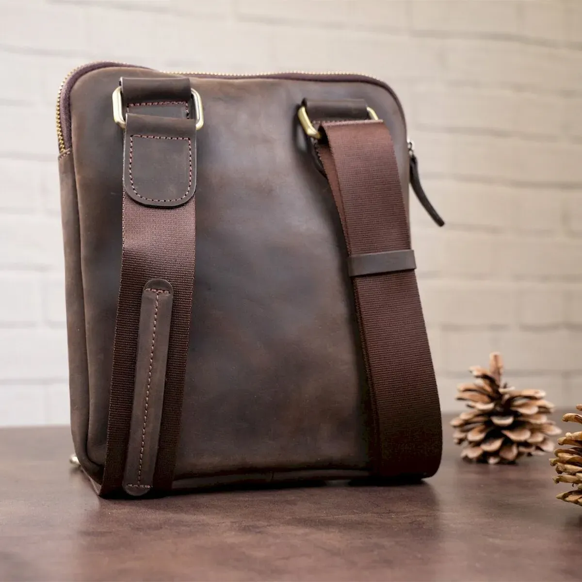 Невелика чоловіча сумка-планшет, з натуральної вінтажної шкіри, характерними ознаками якої є: неоднорідність забарвлення та потертості, які надають виробу вишуканого, індивідуального вигляду. Відмінний подарунок для стильного, сучасного чоловіка.