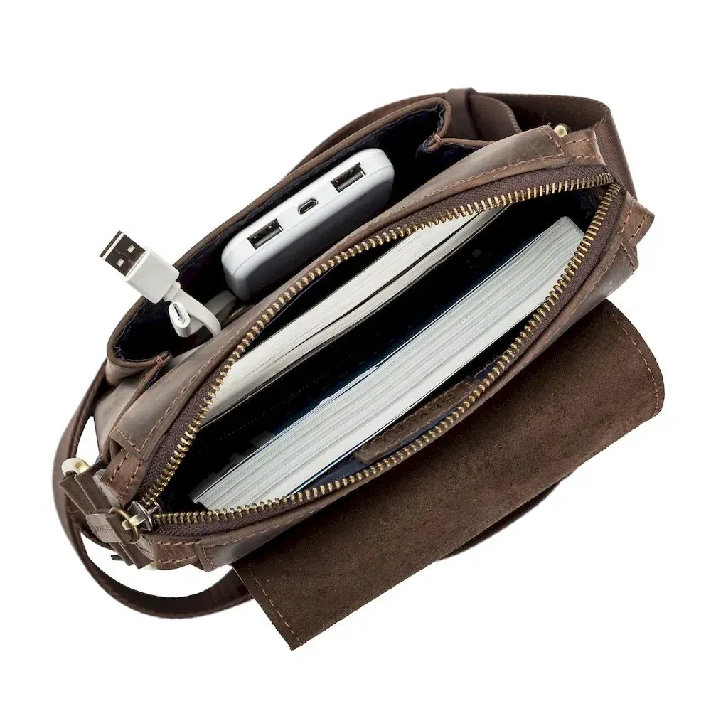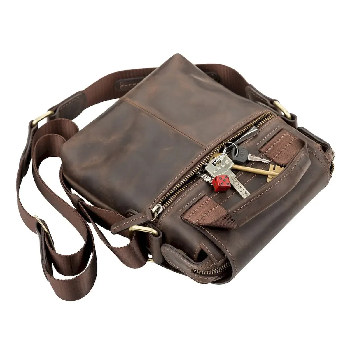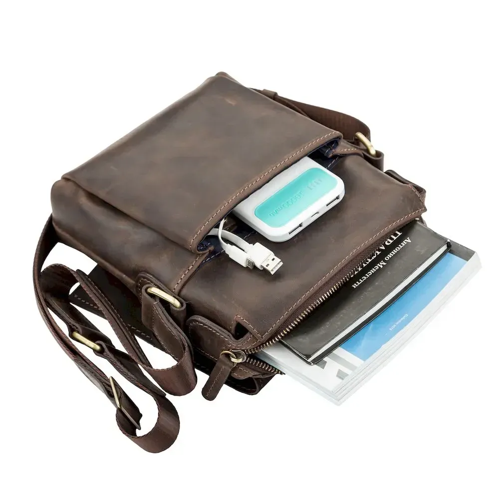 Чоловіча шкіряна сумка невеликого розміру із клапаном. Аксесуар виконаний з натуральної вінтажної шкіри, характерними ознаками якої є: неоднорідність забарвлення та потертості, які надають виробу вишуканого, індивідуального вигляду.