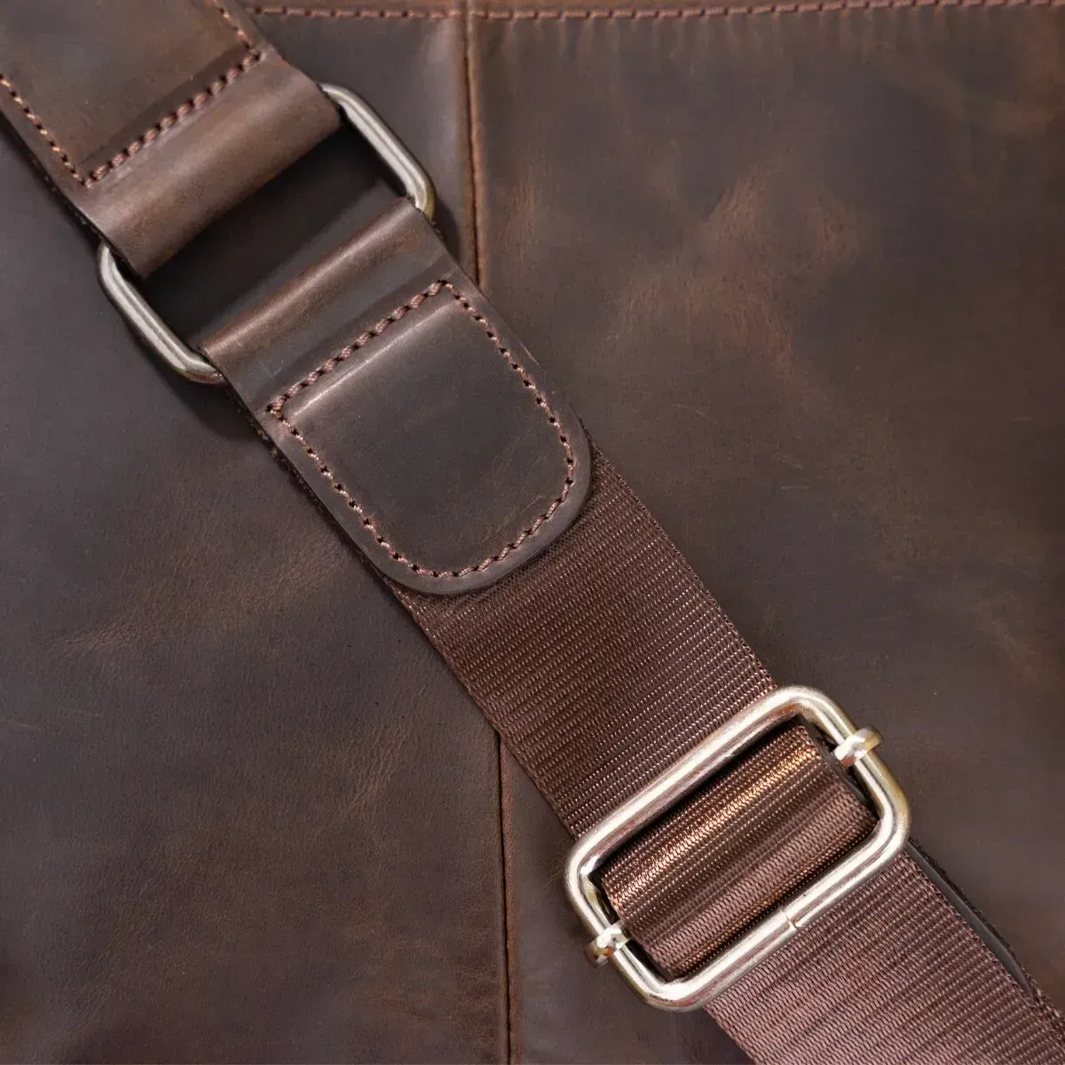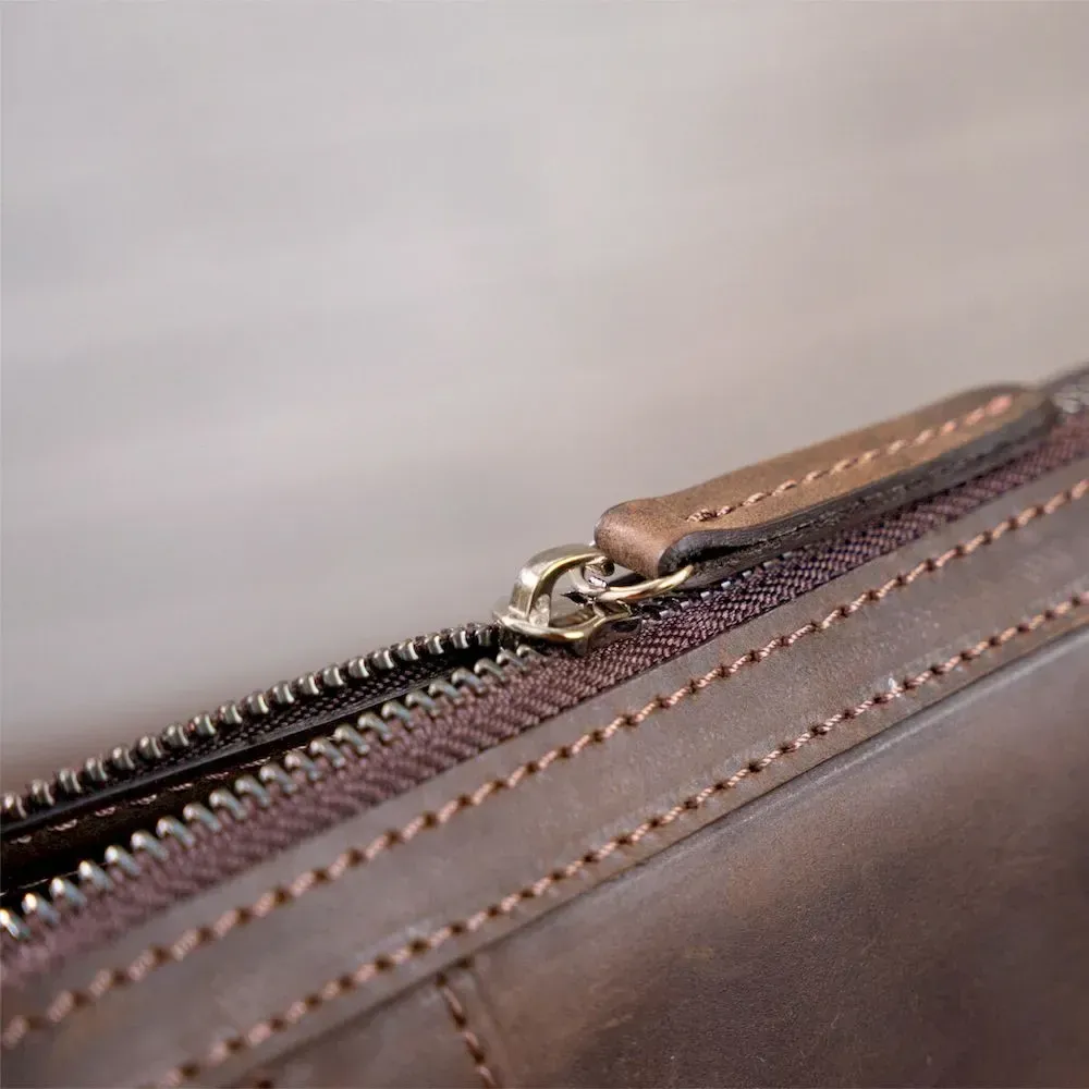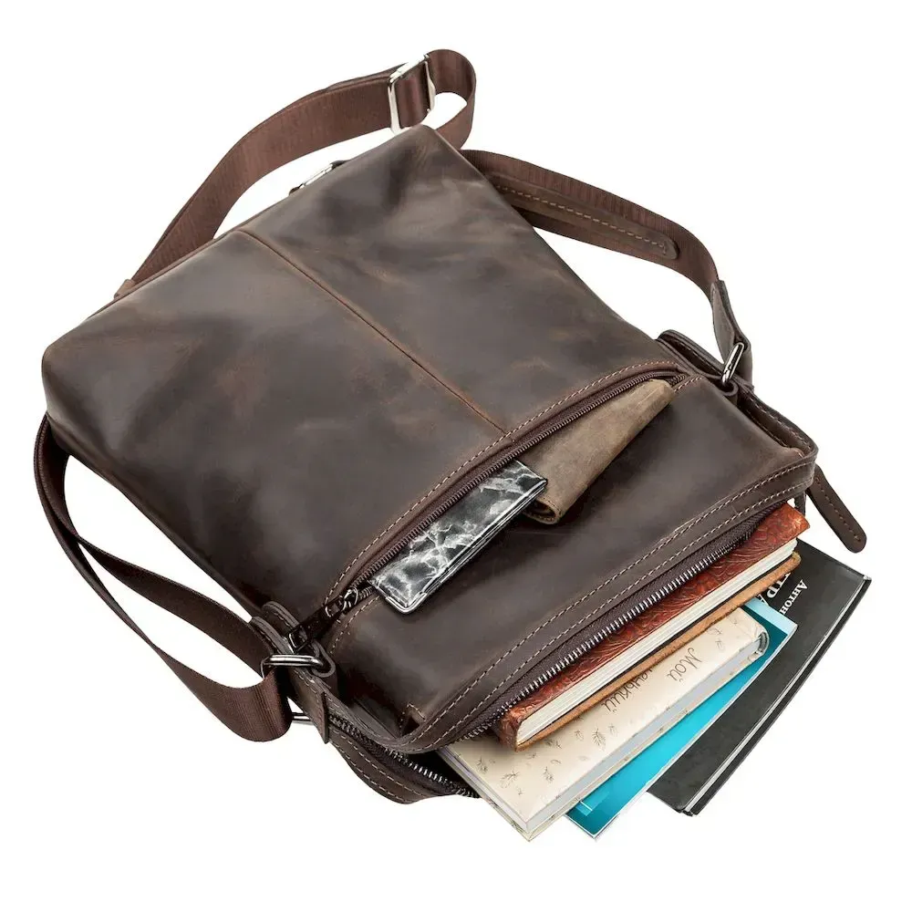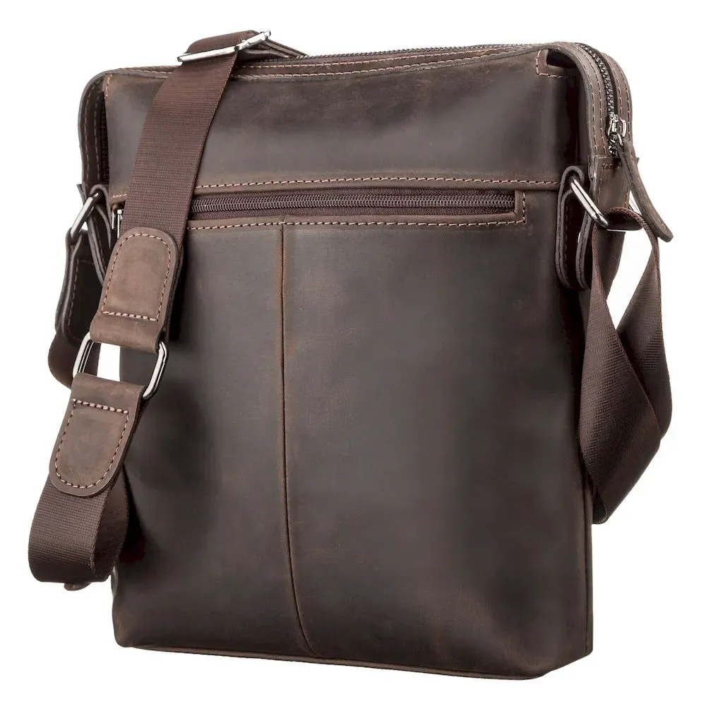 Надійна сумка для стильних чоловіків виконана з натуральної вінтажної шкіри, характерними ознаками якої є: неоднорідність забарвлення та потертості, які надають виробу вишуканого, індивідуального вигляду. Усередині: кишеня-перегородка на блискавці, кишеня для телефону, відділення для ручок і дрібниць,