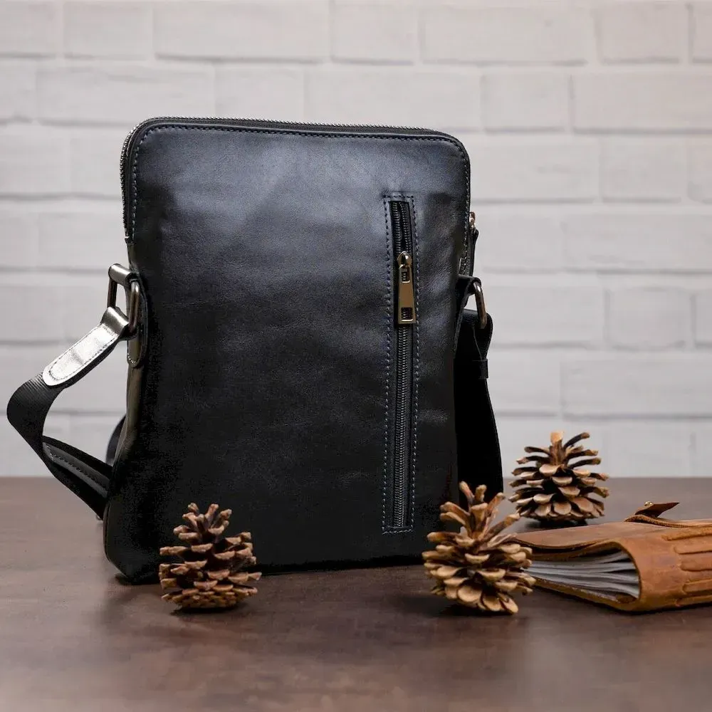Стильна чоловіча сумка, з натуральної гладкої шкіри, невеликого розміру. Дуже функціональна та зручна. Особливість дизайну дозволить чоловікові носити з собою багато потрібних дрібниць.