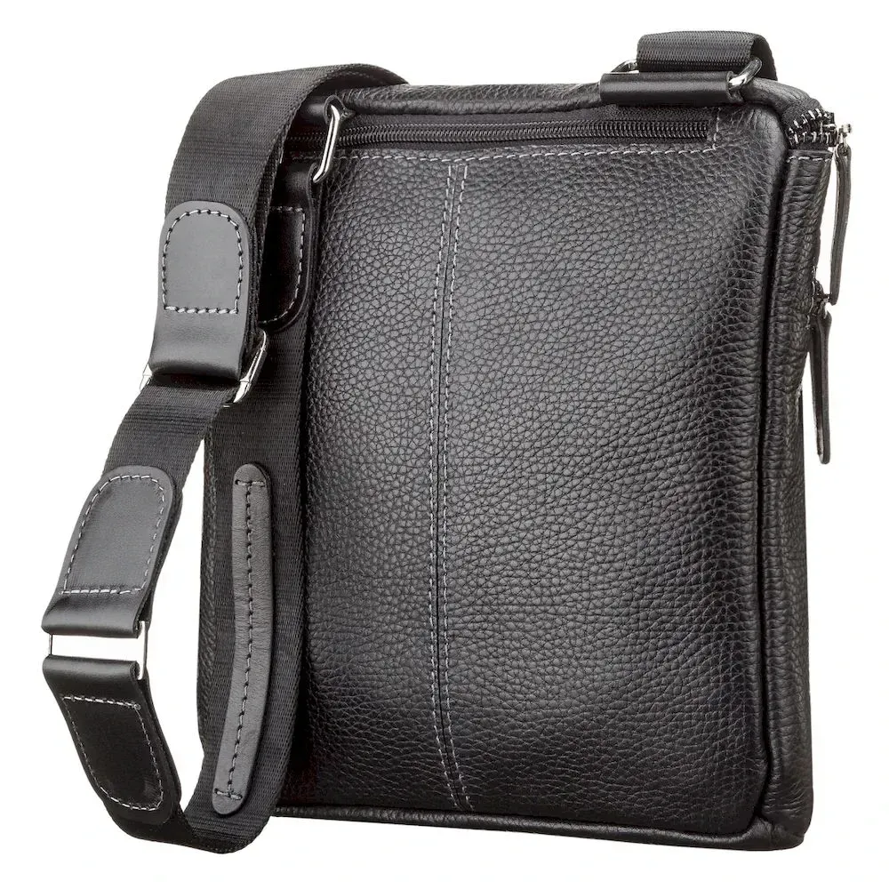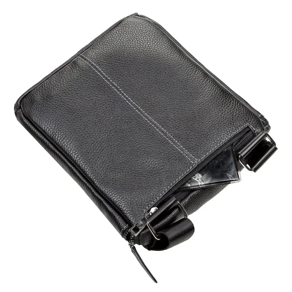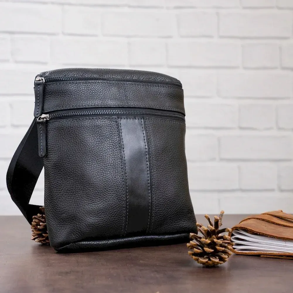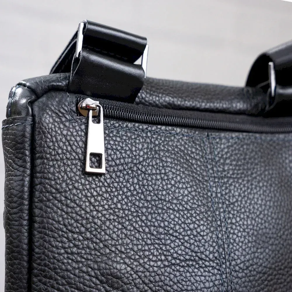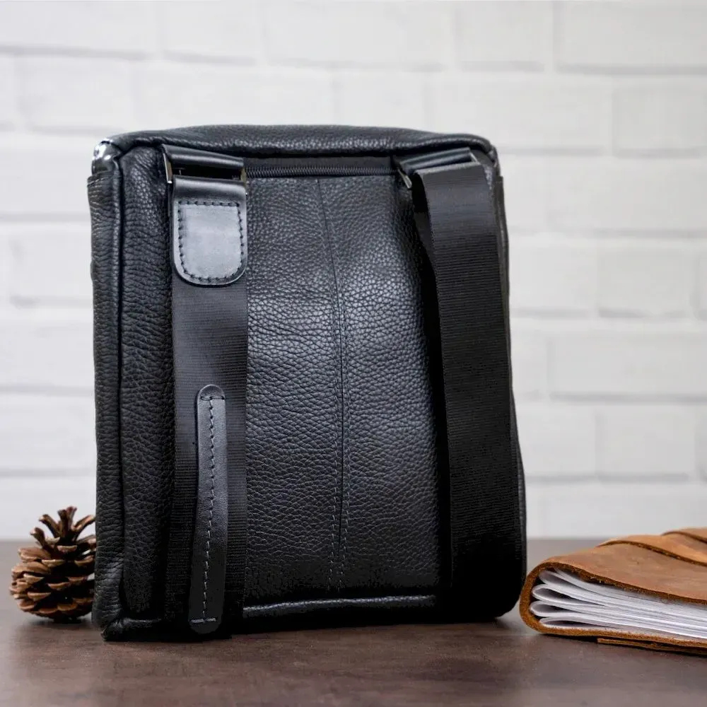 Стильна, сучасна, чоловіча сумка, з натуральної зернистої шкіри. Розмір дуже зручний. Особливість дизайну дозволить чоловікові носити з собою особисті речі, документи, багато потрібних дрібниць.
