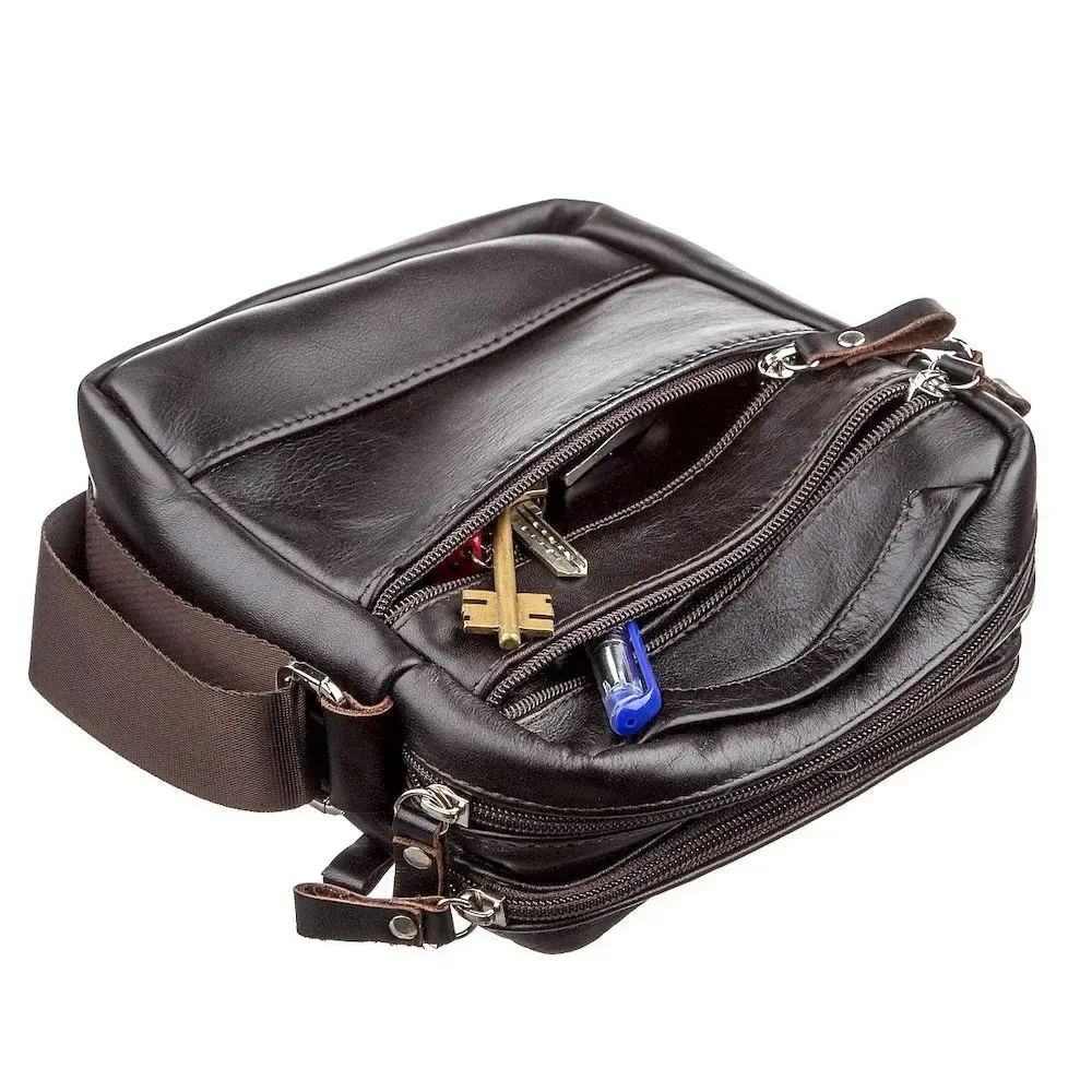Компактна чоловіча шкіряна сумка для автомобілістів. Незважаючи на свої невеликі розміри, аксесуар є дуже містким та функціональним. Модель доповнена фурнітурою сріблястого кольору. Сумку можна носити як на плечі, так і в руці. Аксесуар оснащений міцним ремінцем. Дуже легка і м'яка на дотик. Може бути ідеальним подарунком з приводу.