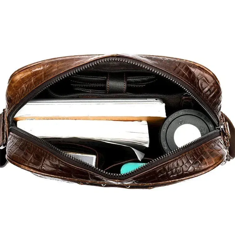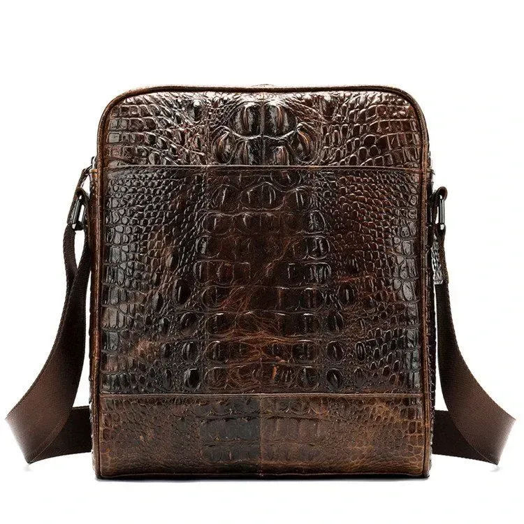 Добротна чоловіча вертикальна сумка найкращої якості. Аксесуар підходить на зустрічі, роботу та прогулянки. Ідеальний варіант щодня. Сумка зручно носиться на плечі. Аксесуар має тиснення під шкіру крокодила і носиться досить довго і не примхливий у догляді. Модель зі шкіри рептилії оцінить кожен чоловік. На шкіра такого плану не видно подряпин і потертостей. Буде чудовим подарунком. Сумка упакована в тканинний чохол, що захищає її від пилу та зношування.
