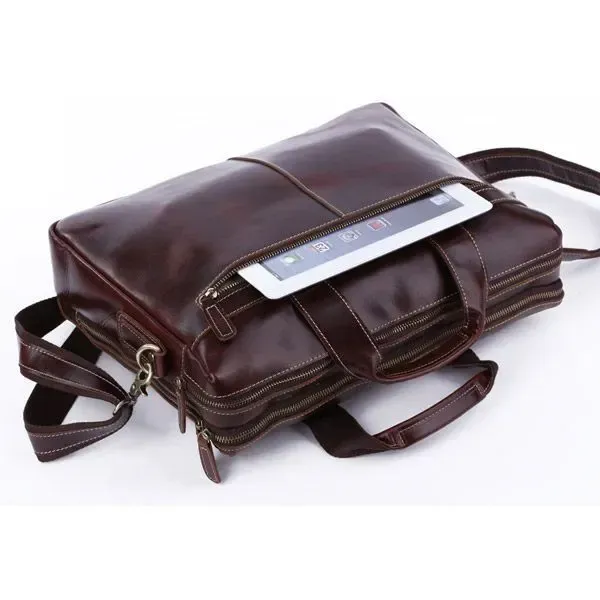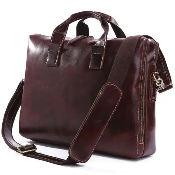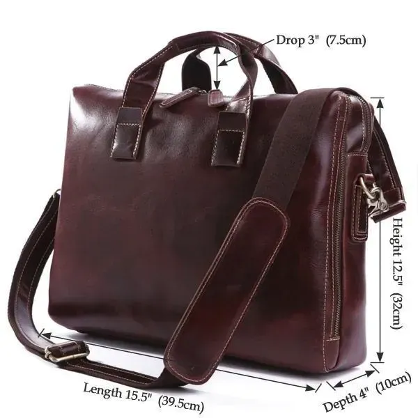 Відмінна чоловіча сумка, вміщує ноутбук 15,6 дюйма. Чудово підійде для повсякденної експлуатації. Сумка виготовлена із товстої вінтажної шкіри. Можна носити як за допомогою ручок так і через плече.
