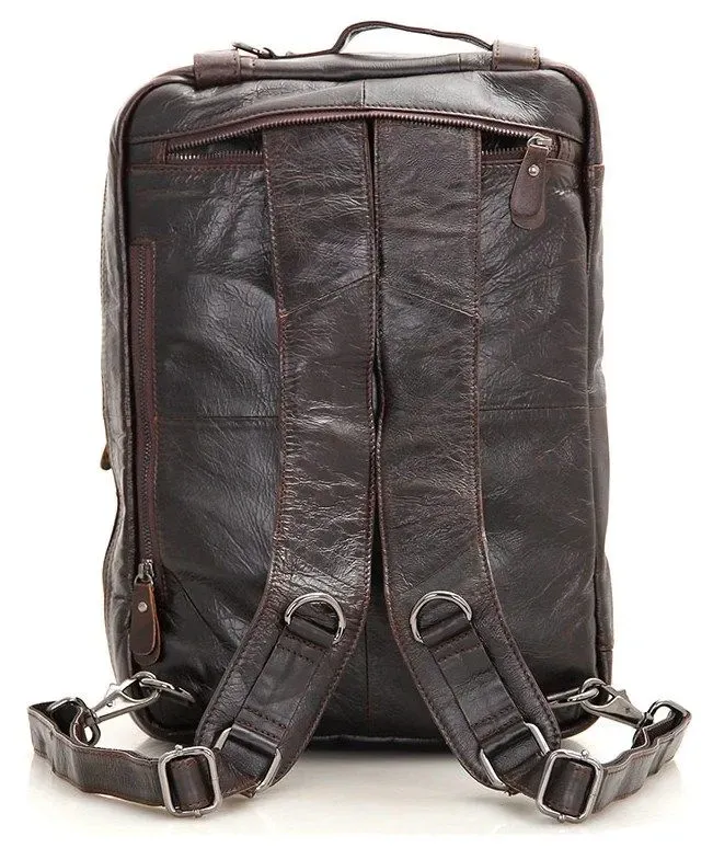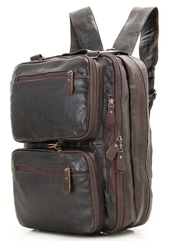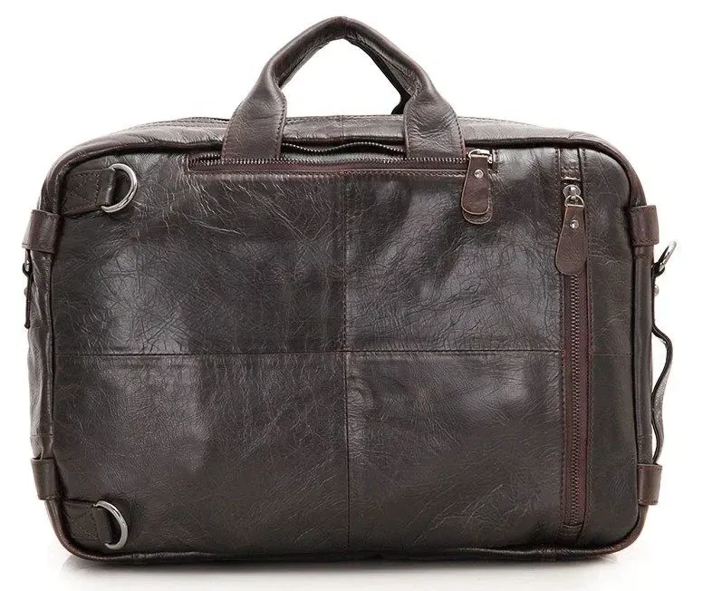 Чоловіча сумка -трансформер із натуральної шкіри. При виготовленні аксесуара використовувалася надійна фурнітура та якісна підкладка. Сумку можна носити в руці через плече, а також як рюкзак. Сумка має благородний коричневий колір і стильний вигляд. У такий аксесуар поміститься більшість речей, потрібних сучасній людині. >