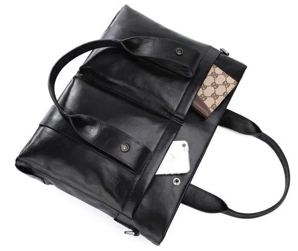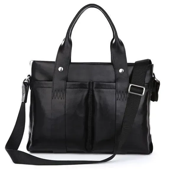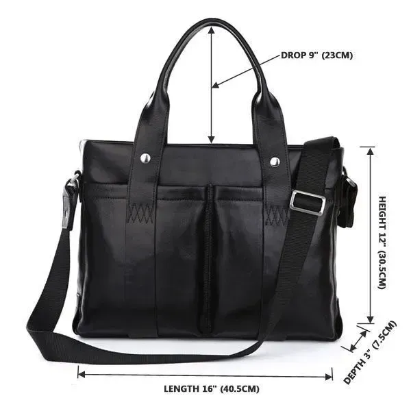 Чудова шкіряна чоловіча сумка. Сумки можна носити як через плече так і за допомогою зручних шкіряних ручок. В основне відділення сумки поміщається ноутбук 15 дюймів.