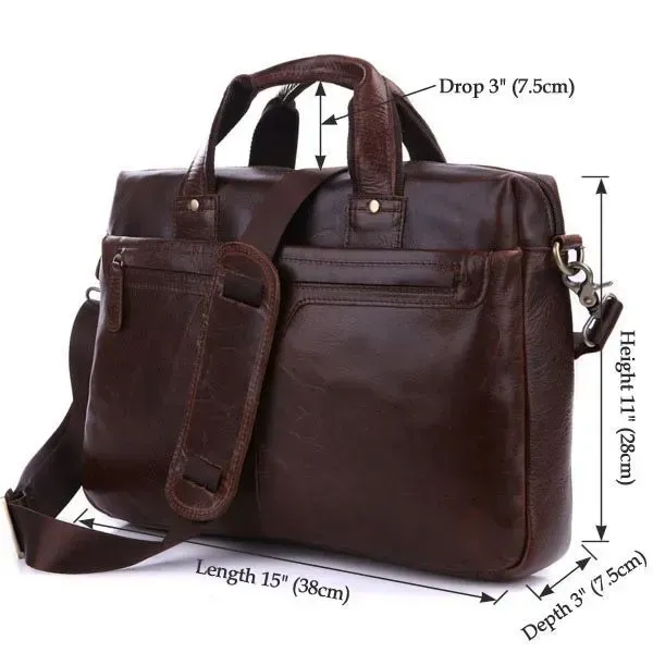 Зручна чоловіча шкіряна сумка з натуральної високоякісної шкіри. Ця чоловіча сумка чудово підійде для ноутбука 14 дюймів, планшета, папки з документами формату А4, мобільного телефону та інших необхідних аксесуарів.