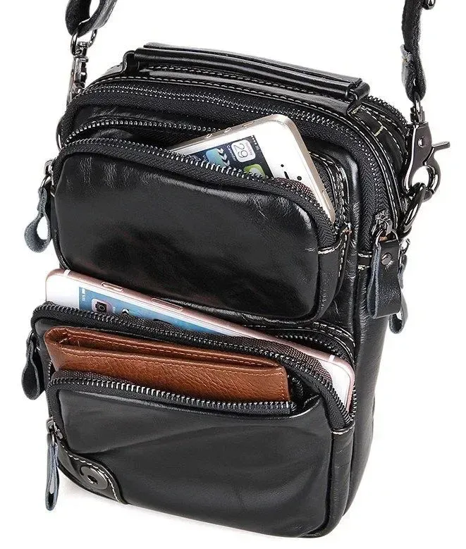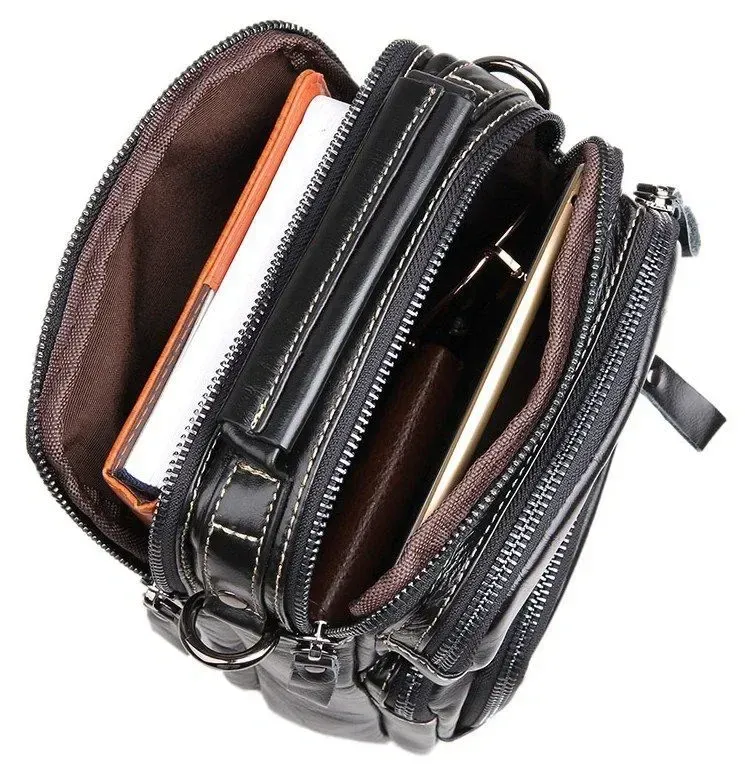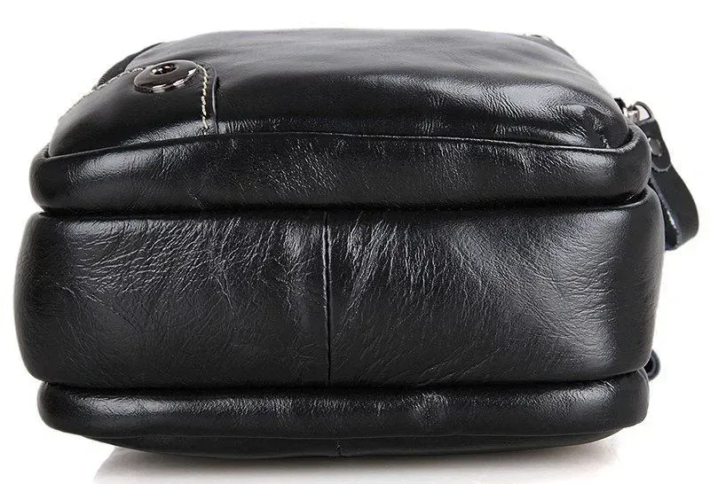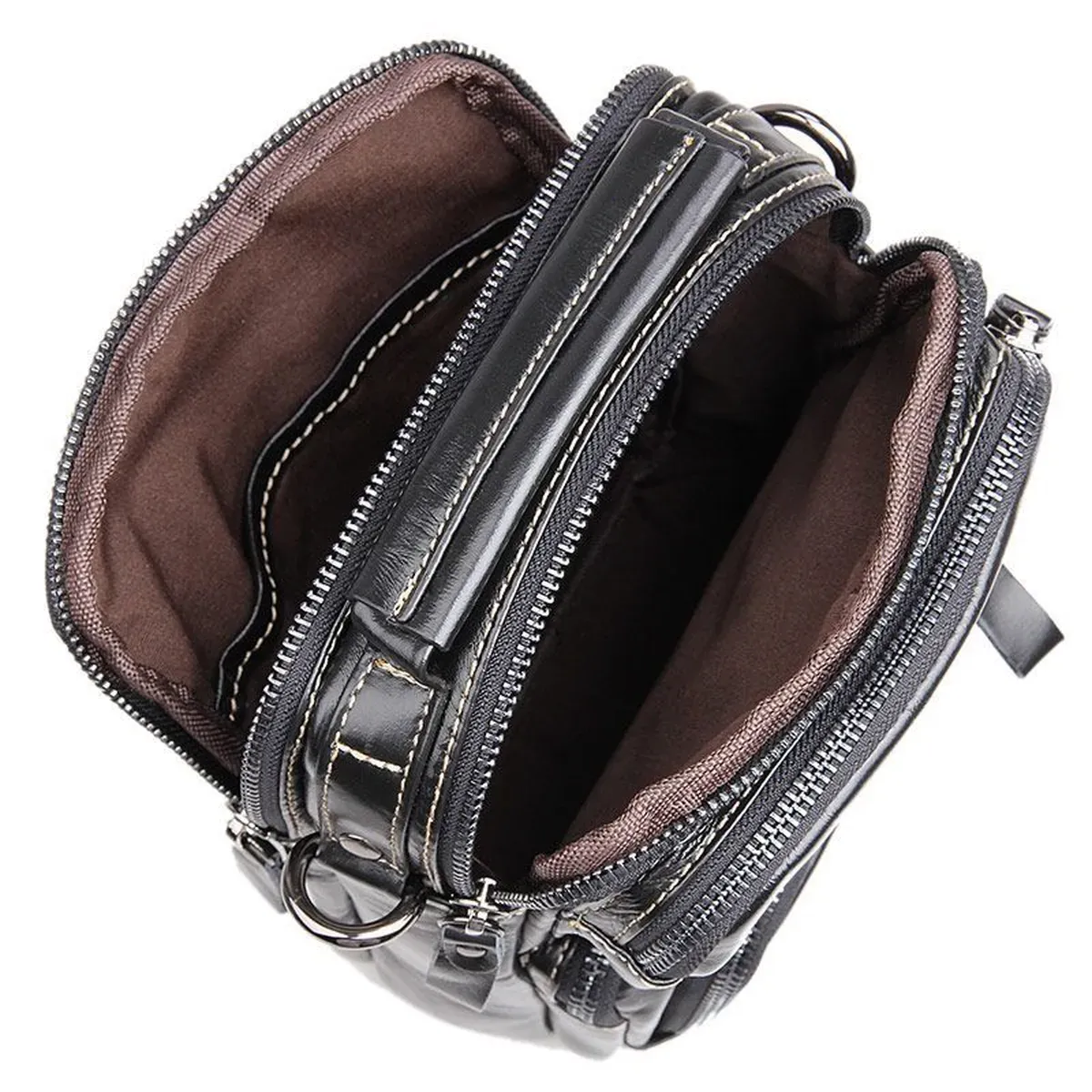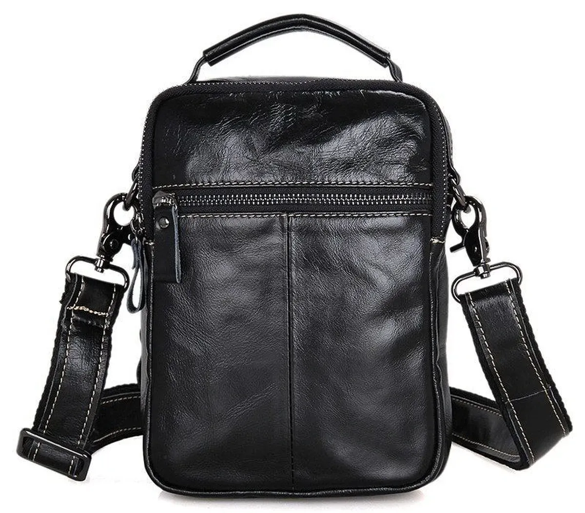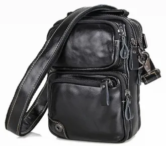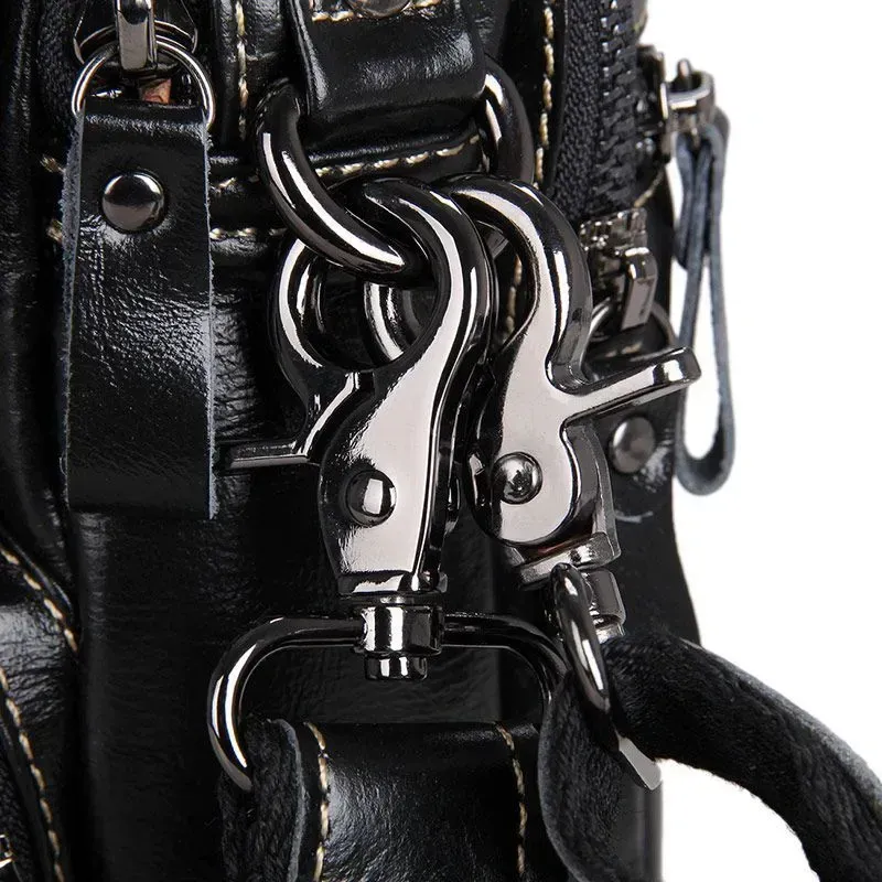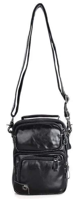 Ексклюзивна чоловіча сумка з безліччю кишень та відділень. Аксесуар виконаний з натуральної високоякісної шкіри приємної на дотик. Сумка має компактні розміри, але при цьому вона досить містка. Шкіра відрізняється легким блиском. Колір фурнітури: срібло. Сумку можна переносити в руці за допомогою зручної шкіряної ручки, а також через плече (у комплекті знімний плечовий ремінь, що регулюється). Аксесуар упакований у текстильний мішок для пилу.