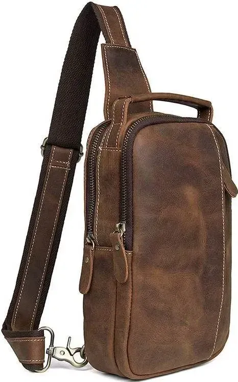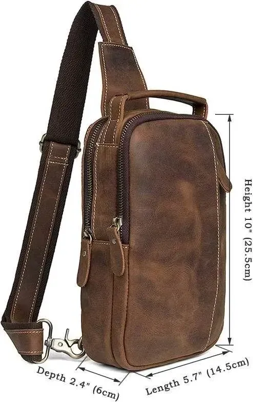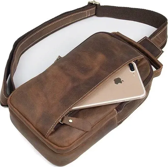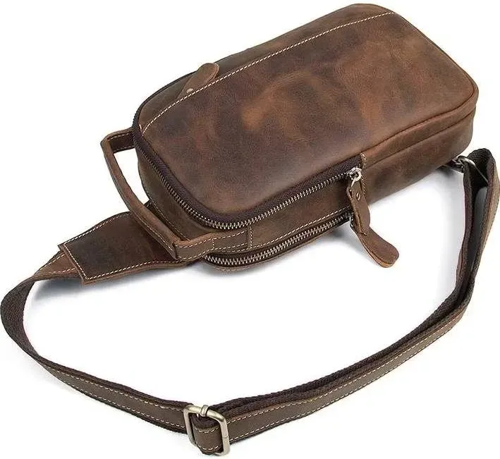 Зручна шкіряна сумка через плече, з якісної вінтажної шкіри . Колір фурнітури: латунь. Аксесуар має невеликі розміри, але при цьому сумка досить містка і функціональна. Підкладка виробу виконана з міцного текстильного матеріалу, приємного на дотик. Колір підкладки: коричневий. Виріб упакований в білий пилозахисний мішок.