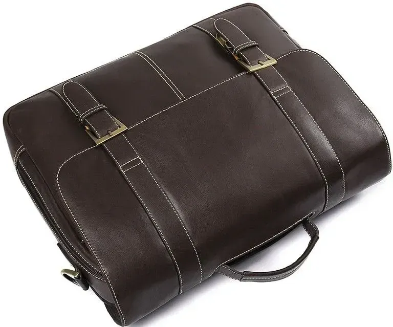 - виріб упаковано, в білий чохол. гладкої шкіри. Колір фурнітури: латунь. Портфель закривається за допомогою шкіряного клапана, на двох мехінічних засувках. Такий шкіряний аксесуар стане чудовим подарунком коханому чоловікові, сину, батькові або керівнику.