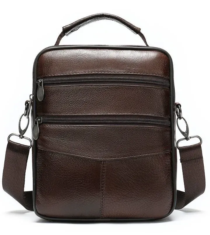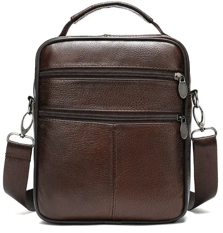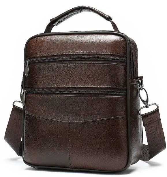 Комфортна сумка для чоловіків невеликого розміру. Відмінний варіант, для тих, хто не любить великі сумки і шукає сумку на кожен день. Аксесуар прошитий ниткою темно-коричневого кольору. Всередині аксесуару якісна текстильна підкладка коричневого кольору. Сумка виготовлена з натуральної шкіри високої якості. Усі технічні процеси проходять незмінний моніторинг. Ви можете не сумніватися у якості виробу. Сумка ідеально та довго носиться. Хороший варіант для подарунка близькій людині.