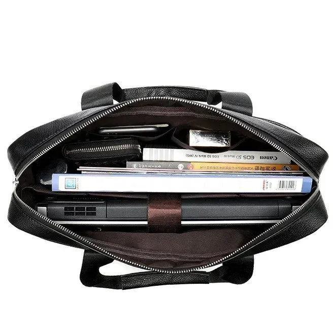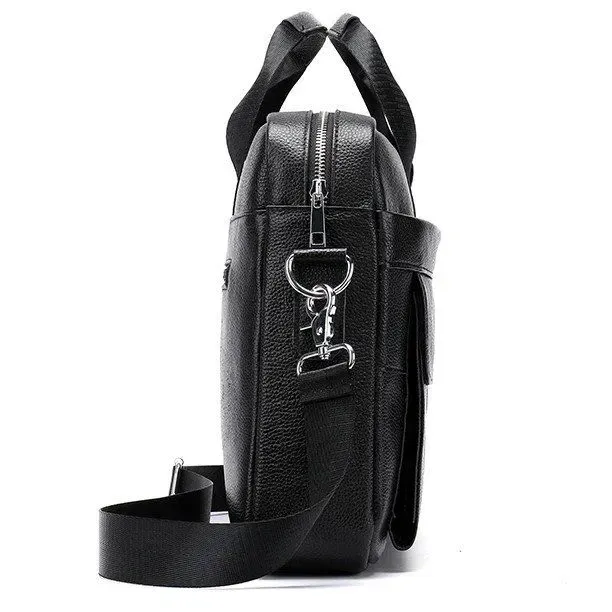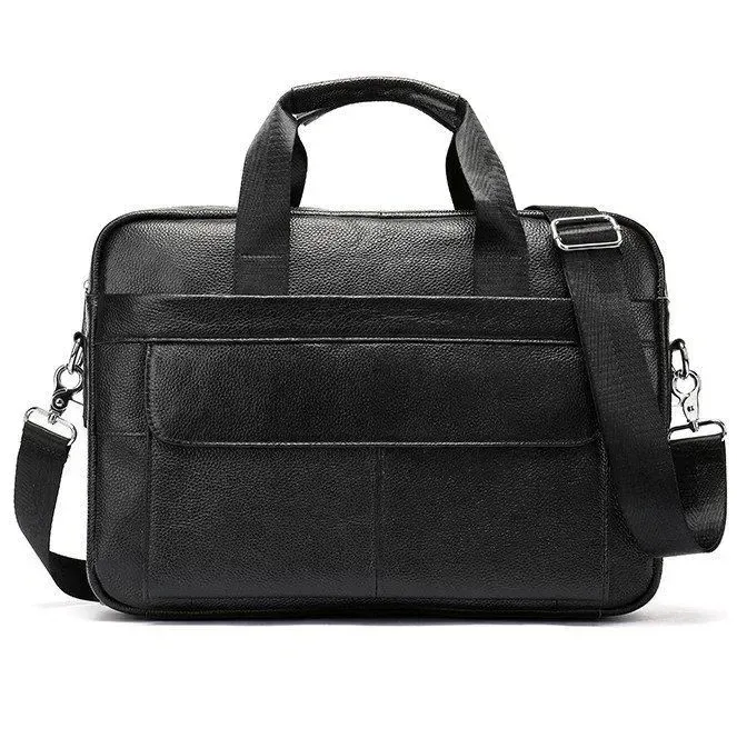 Популярна чорна сумка під ноутбук. Ноутбук 15.6 дюймів у сумку легко вміщується. Виконана з натуральної шкіри у класичному стилі. Ручки на текстильні сумки з шкіряними вставками. Для носіння на плечі є текстильний ремінець. Сумка чудово підійде для роботи та ділових зустрічей. А також ви можете просто носити в ній все необхідне. Об'єм сумки адаптований під папки з паперами. Фурнітура у сумці сріблястого кольору. Виготовлена з якісного металу. Модель упакована у пилозахисний чохол. Може бути ідеальним подарунком для близької людини.