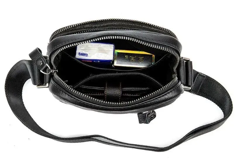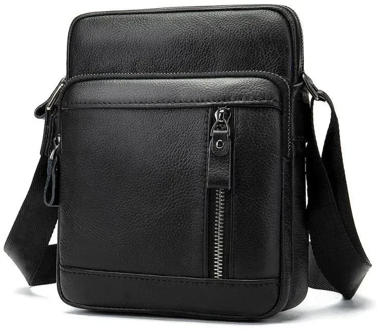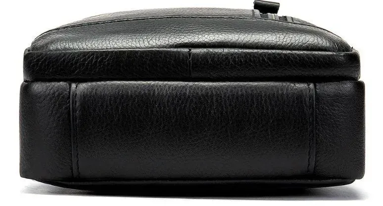 Компактна сумка для чоловіків на кожен день. По краях аксесуар прошитий чорною ниткою. Усередині сумки міцна текстильна підкладка чорного кольору. Особливістю такої шкіри є те, що на ній не видно подряпин і зносу. Ви будете приємно здивовані, тим як сумка довго носитиметься. Може бути чудовим варіантом для подарунка будь-якому чоловікові.
