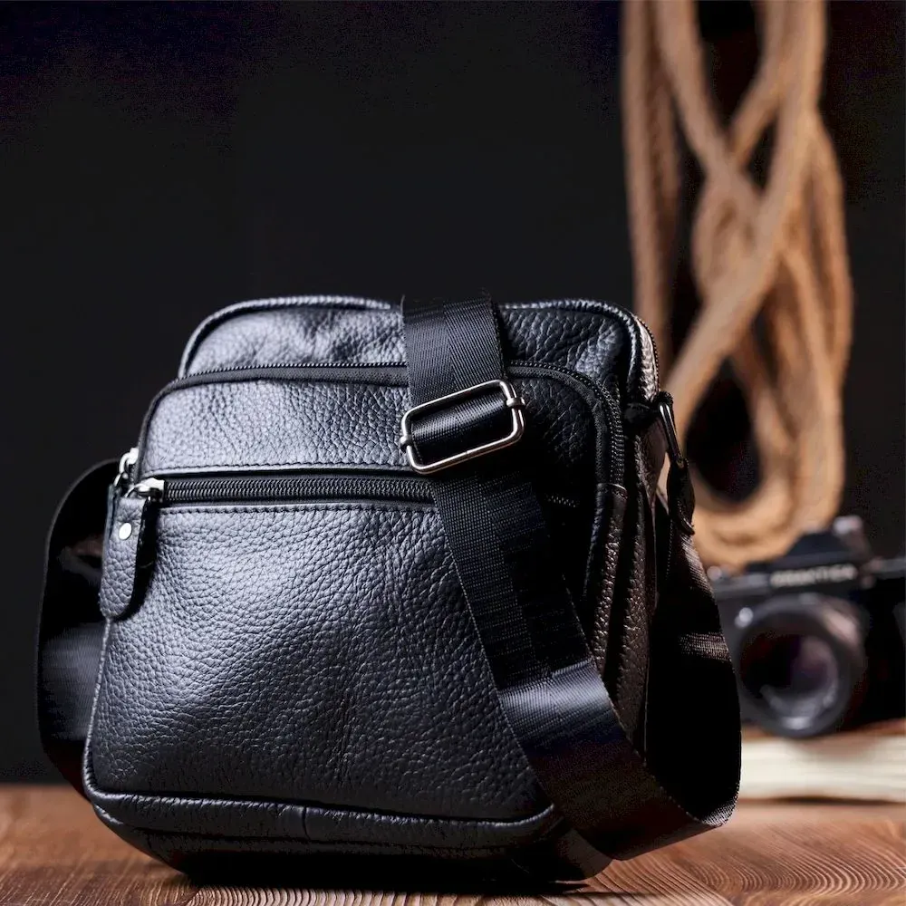 Зручна чоловіча сумка компактного розміру із натуральної шкіри. У сумку з легкістю помістяться всі необхідні речі. З такою сумкою зручно ходитиме на роботу або зустрічі. Доповнено виріб якісною фурнітурою. Сумка стане чудовим подарунком для близької людини.