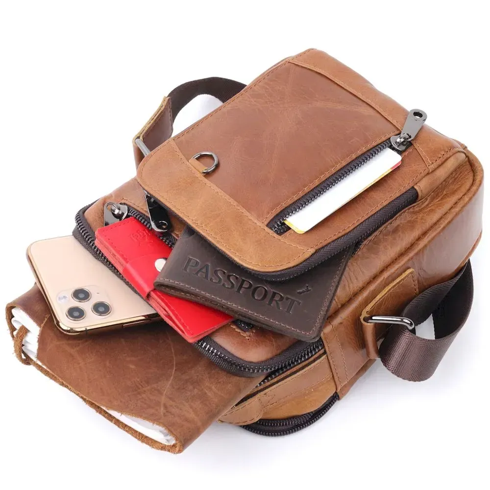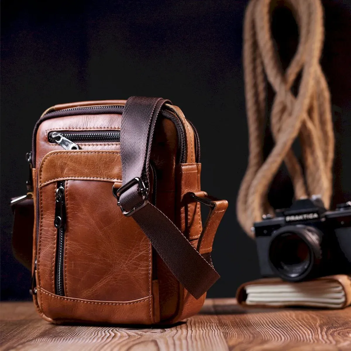 Багатофункціональна чоловіча сумка компактного розміру з натуральної шкіри. У сумку з легкістю помістяться всі необхідні речі. З такою сумкою зручно ходитиме на роботу або зустрічі. Доповнено виріб якісною фурнітурою. Сумка стане чудовим подарунком для близької людини.