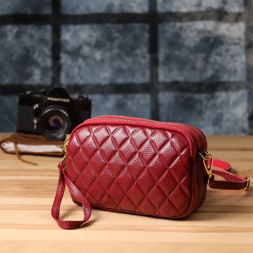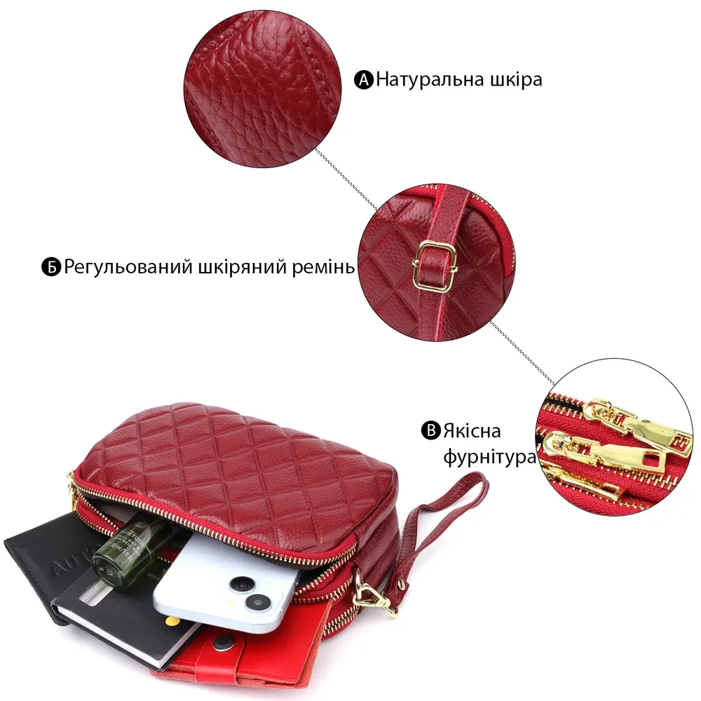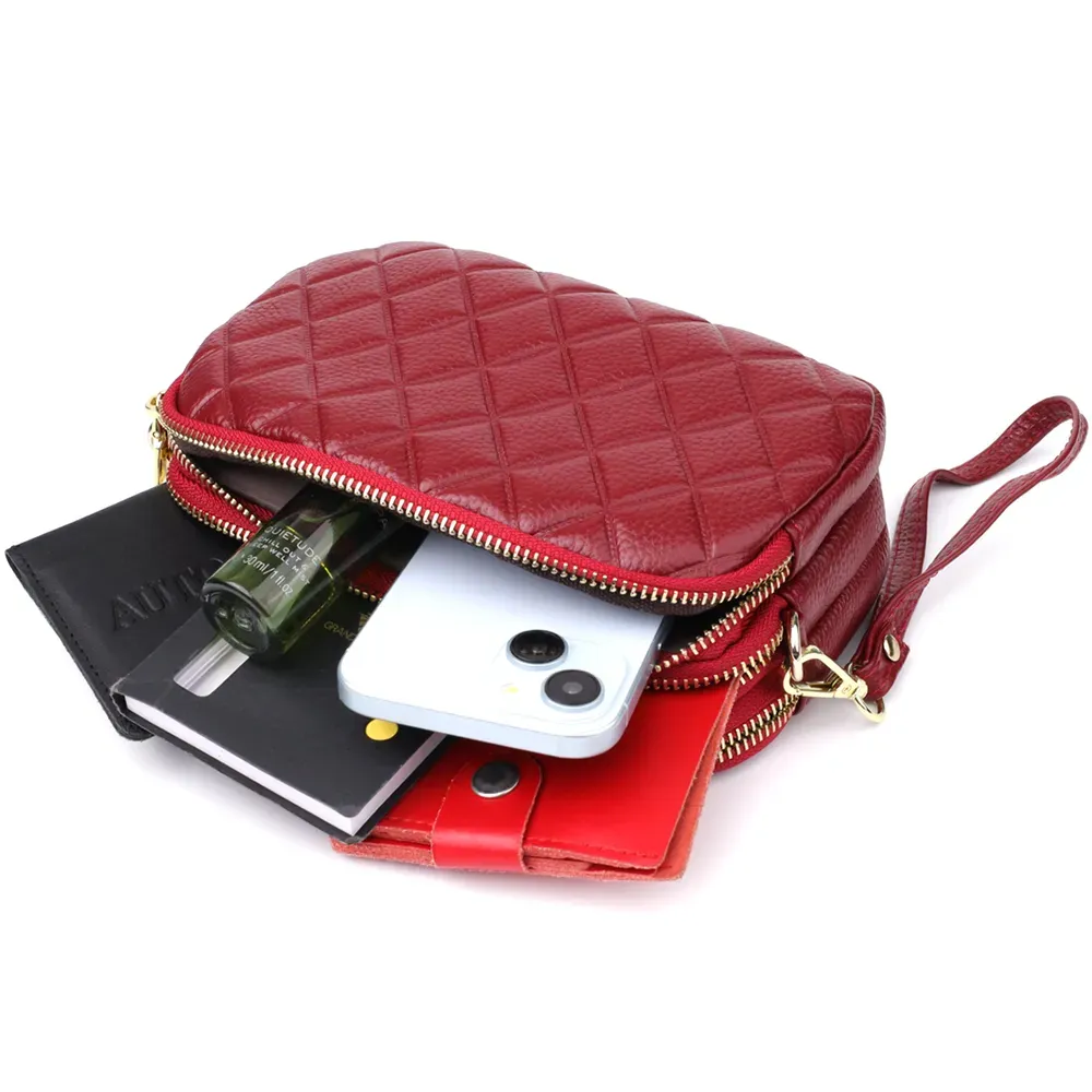 Ця шкіряна стьобана сумка на три відділення - ідеальний вибір для жінок, які цінують комфорт, порядок та бездоганний зовнішній вигляд у кожному образі.