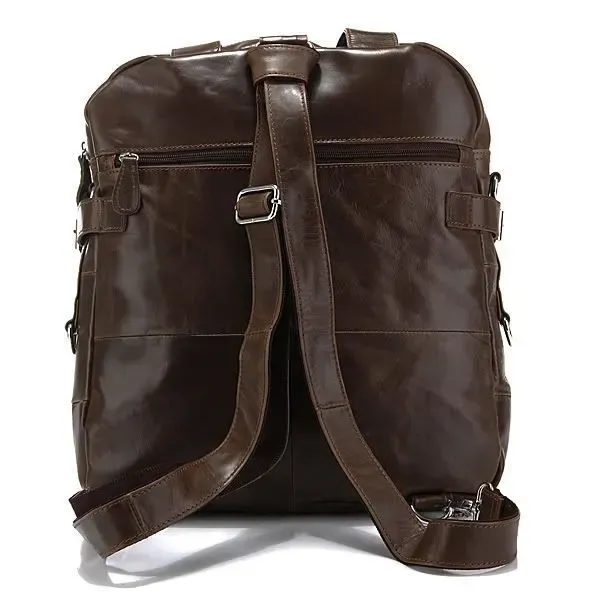 Перед Вами шкіряний виріб, який можна позиціонувати як шкіряний рюкзак але при цьому його можна носити і як шкіряну сумку в руках або через плече. Цей шкіряний рюкзак досить місткий і функціональний. Він добре прошитий і виготовлений з якісної, приємної на дотик натуральної шкіри. > - на лицьовій стороні є дві кишені накладного типу – одна на блискавці, а друга на магніті;